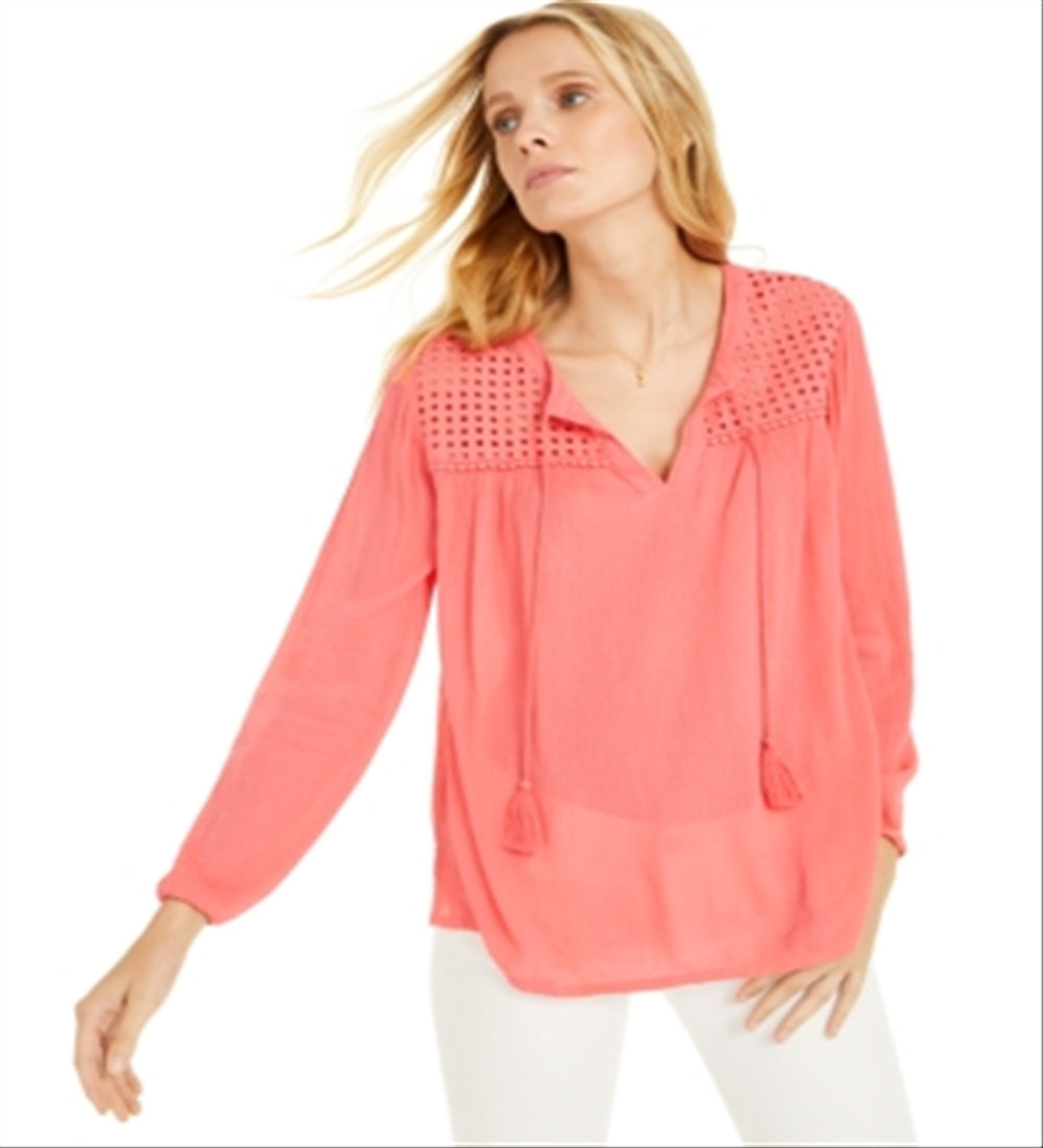 Charter Club Women's Tassel Peasant Blouse Coral Size X-Large