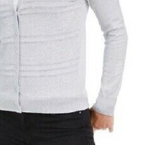Charter Club Women's Textured Lurex Cardigan Sweater Gray Size Medium