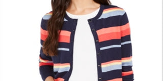 Charter Club Women's Striped Cardigan Blue Size 2XL