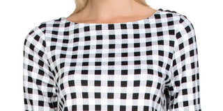 Charter Club Women's Cotton Gingham Print Boat Neck Top Black Size Medium