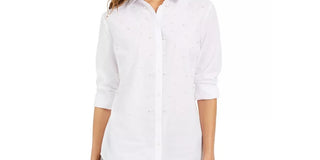Charter Club Women's Faux-Pearl Shirt White Size Extra Small