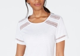 Charter Club Women's Cotton Lace-Trim Top White Size Medium