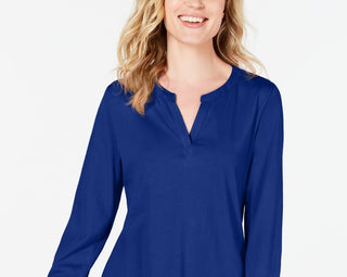 Charter Club Women's Supima Cotton Split-Neck Top Blue Size XX Large