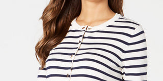Charter Club Women's Striped Grommet-Trim Cardigan Sweater White Size XX Large