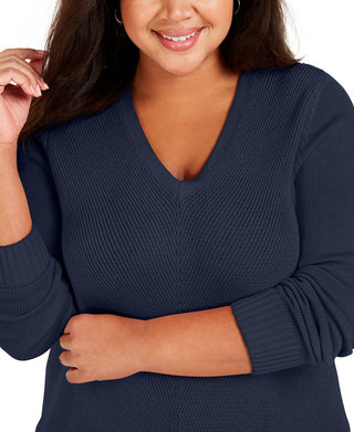Charter Club Women's Plus V Neck Sweate Blue Size 1X