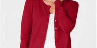 Charter Club Women's Crewneck Cardigan Red Size Petite