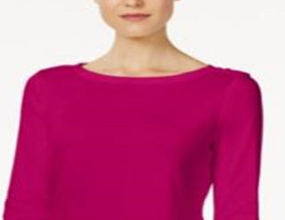 Charter Club Women's Pima Cotton Boat Neck Button Shoulder Top Pink Size XX-Large