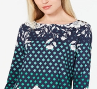 Charter Club Women's Printed Boat Neck Top Blue Size X-Small