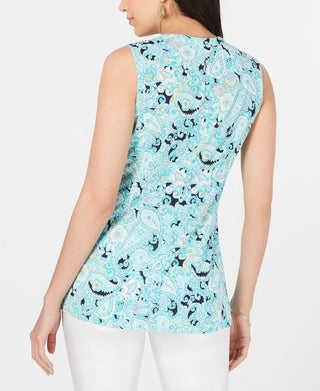 Charter Club Women's Printed Sleeveless V Neck Tunic Top Blue Size Medium