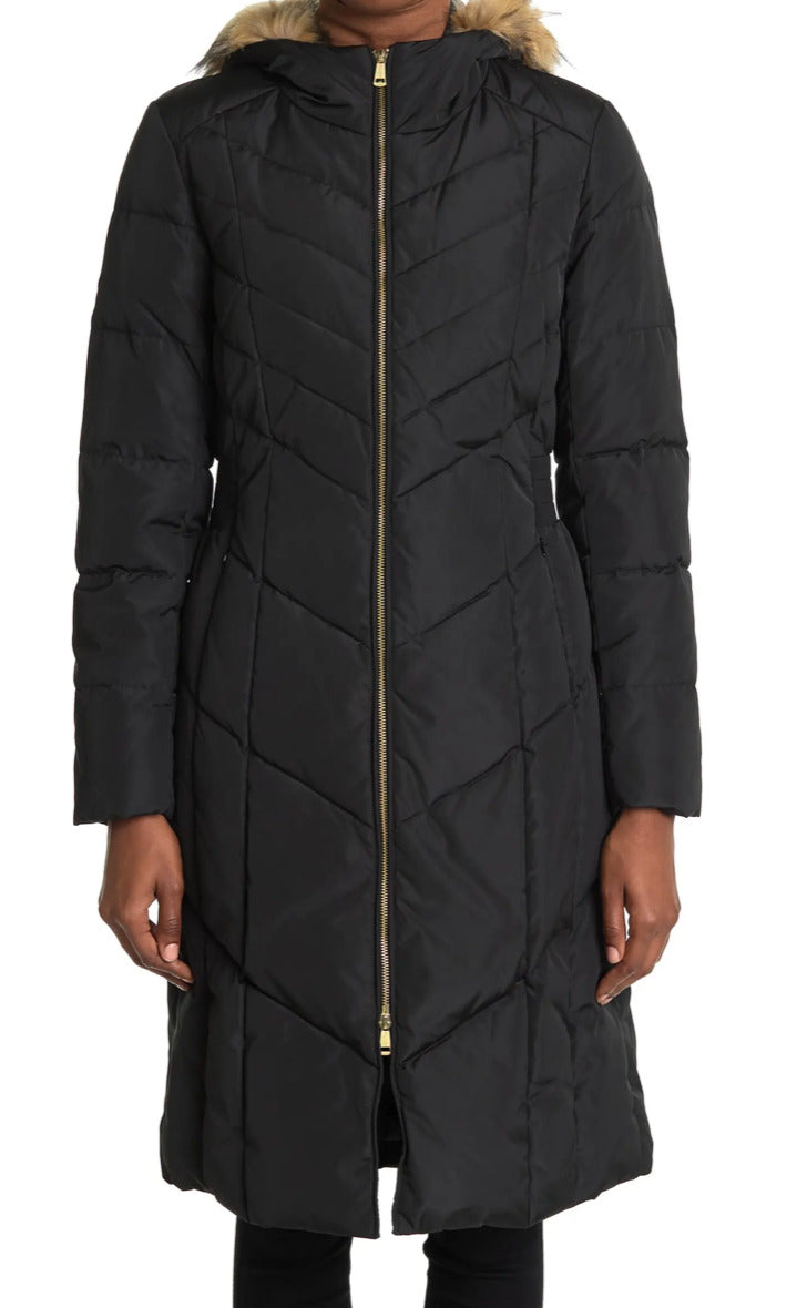Cole Haan Women's Anoraks & Parkas Down Fuzzy Hood Black Size XL