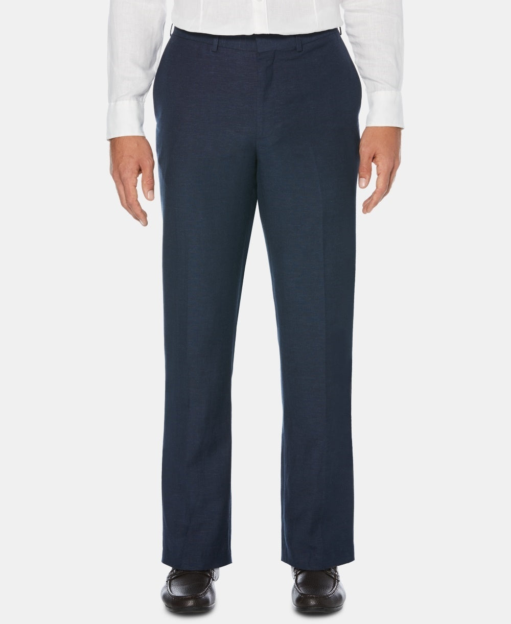 Cubavera Men's Flat Front Textured Linen Pants Blue Size 44X30