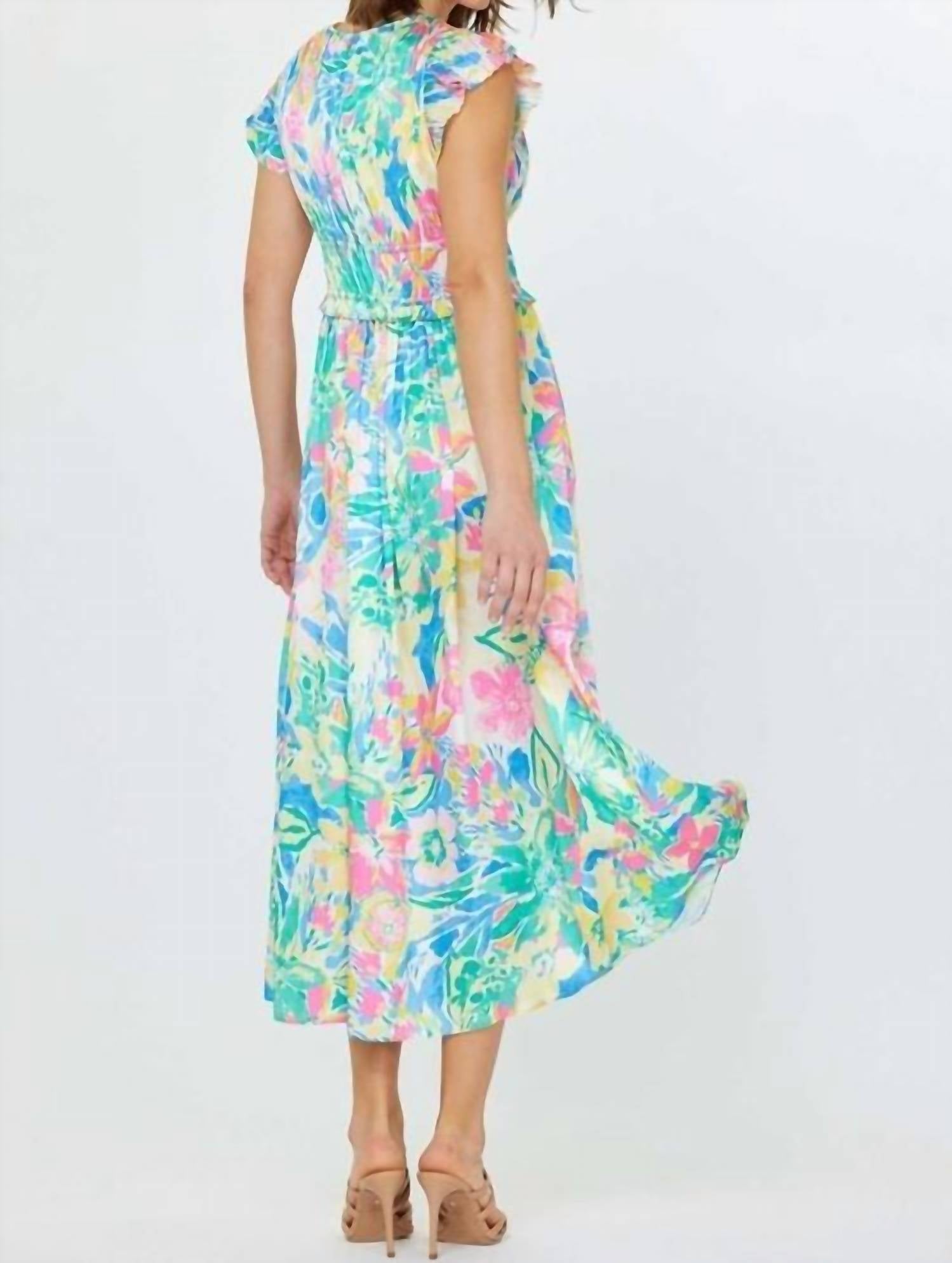 A midi dress so versatile, your options for wearing it are endless. Experience vibrant elegance with the Islamorada V-Neck Dress by Current Air, adorned in a striking floral brushstroke print that captures attention. This women’s dress features a pleated bodice with ruffled cap sleeves and a comfortable elasticized waist. Crafted from polyester, it flows into a graceful midi-length skirt, perfect for vacation getaways or sunny day brunches. Designed with a pull-on closure, care is a breeze with hand wash and line dry instructions.