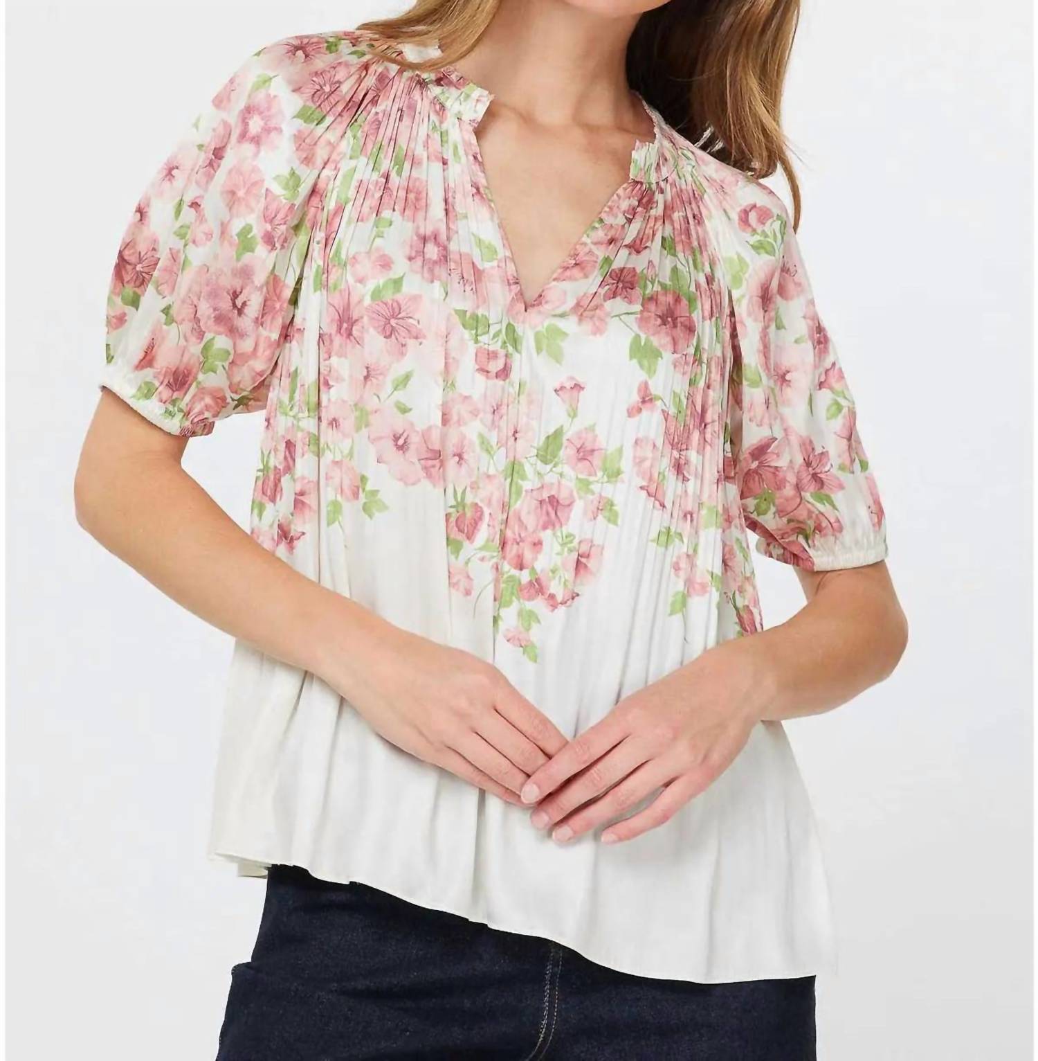 Pair this with your favorite jeans and slides for your next girls night out. The Split Neck Pleated Blouse by Current Air is a delightful addition to any spring wardrobe, featuring short puff sleeves with elastic cuffs for an added touch of style. This rose multi floral top boasts a split v-neckline and pleated detailing across the shoulder and chest, offering a relaxed fit with a soft drape. Made to enhance your vacation outfits, it is designed for effortless minimalism and is perfect for Valentine's Day. Closure: Pull on. Care: Hand wash and gentle cycle in cold water. Available in size XL.