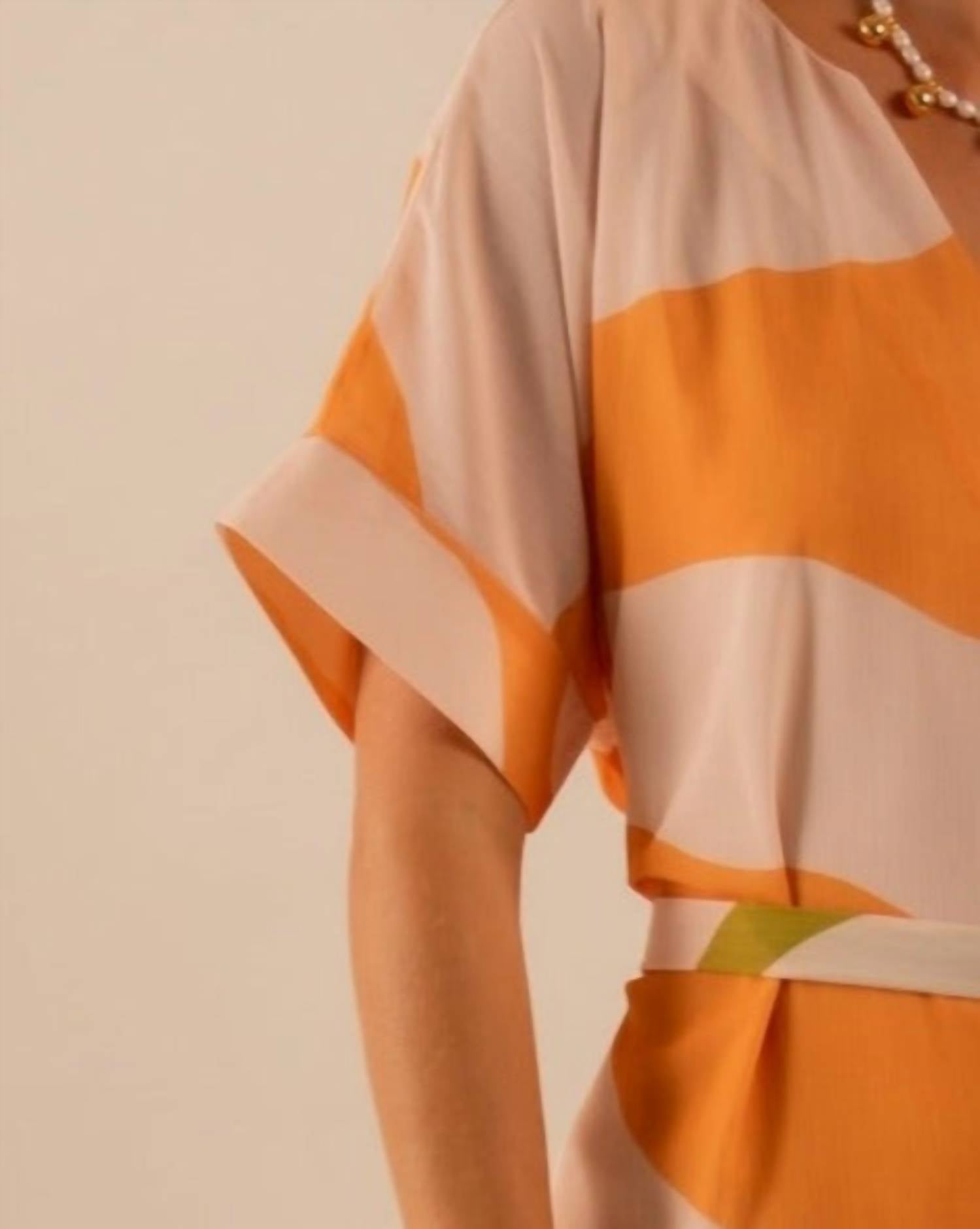 A midi dress so versatile, your options for wearing it are endless. Discover effortless elegance with the Beatrice Sunset Swirling Wind Kaftan Dress by Care Tucker in a vibrant yellow. Featuring dolman sleeves and a V-neckline, this patterned kaftan offers a relaxed, flowy fit with dual slits for added movement. Material: Cool, comfortable textured; fully lined, with no stretch. Closure: Pull-on. Care: Machine wash. Ideal for any occasion, this one-size dress comes with a matching belt and maxi length, perfect for a boho chic style at holiday events. Model is wearing size S (5'6.5" height, 34/B bust, 25" waist).