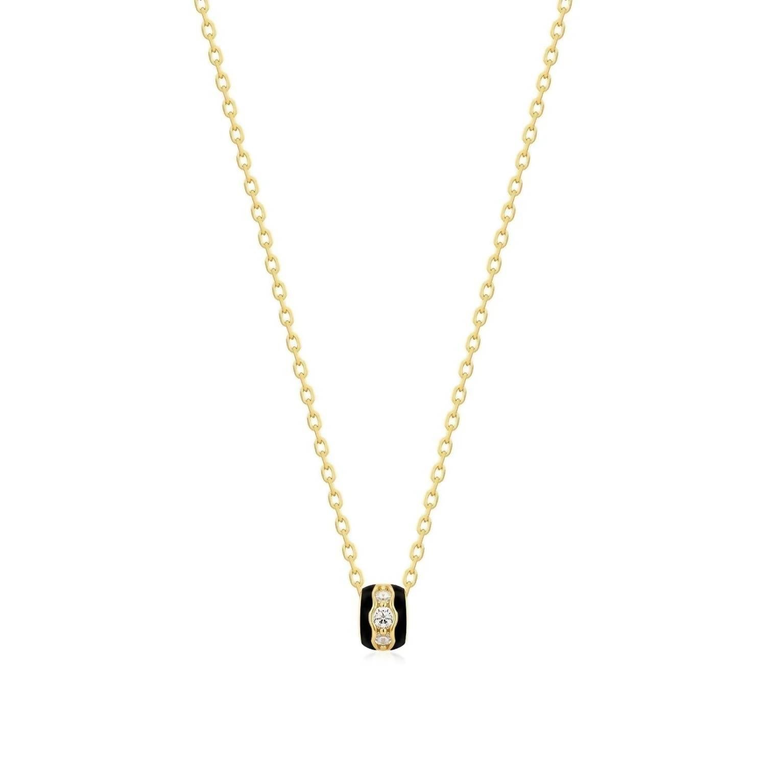 Eklexic - Women's Black Enamel & Cz Channel Rondelle Necklace