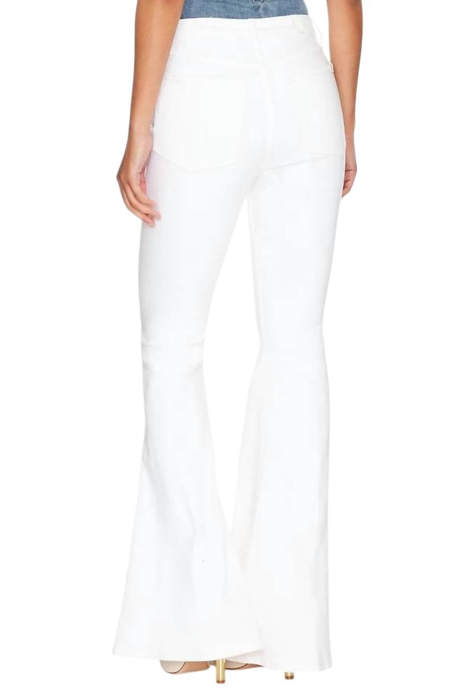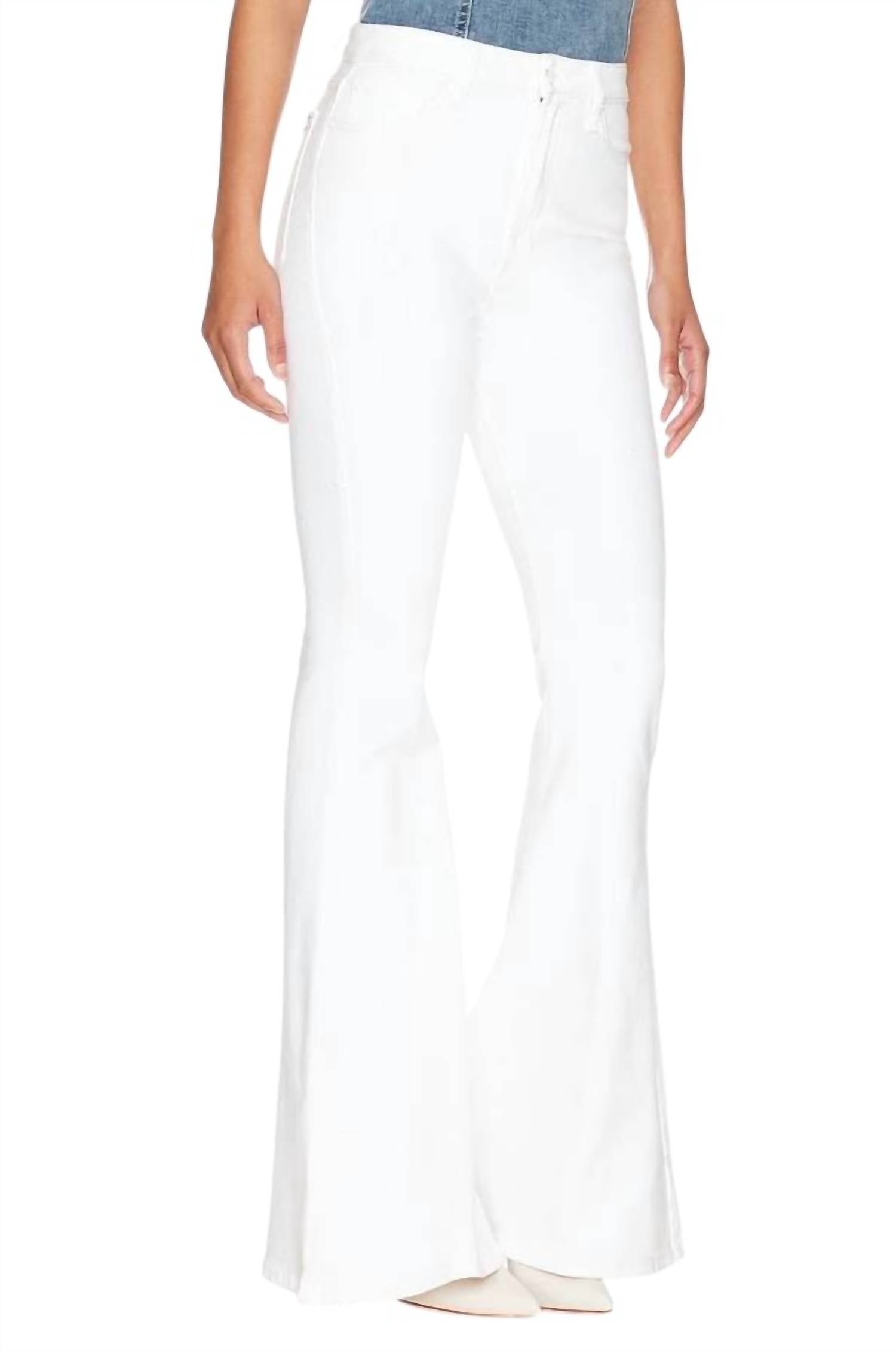 Just as cute as they are comfortable. 7 For All Mankind Megflare Jeans in Clean white These bright white, ultra high-rise, jeans make an impression. With a 70s-inspired silhouette this pair is fitted through the hips and thighs, and the elongating leg leads to a bold flare. The clean white, medium-stretch denim will be your new all-year-around favorite. 98% cotton, 2% elastane.Machine wash.