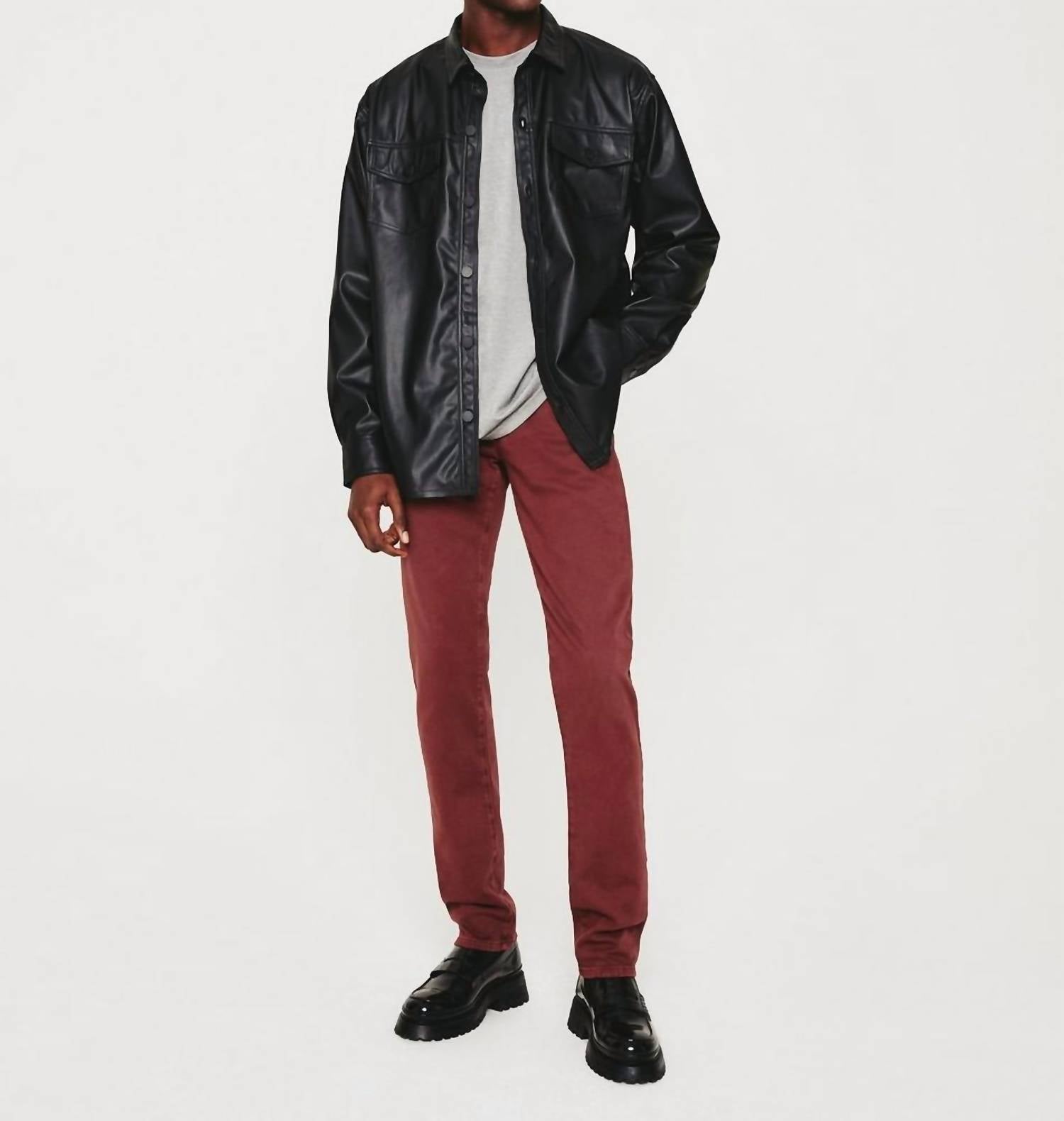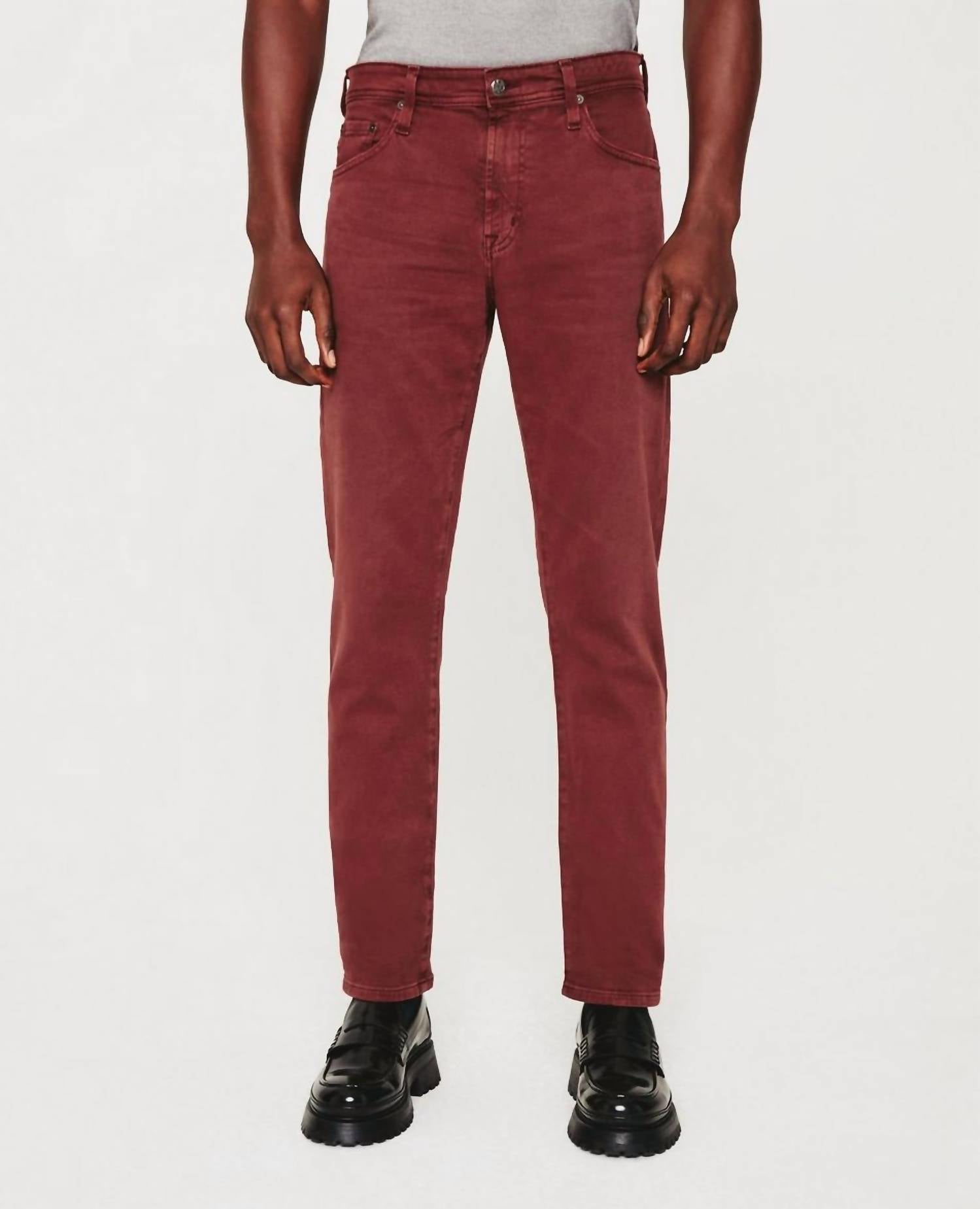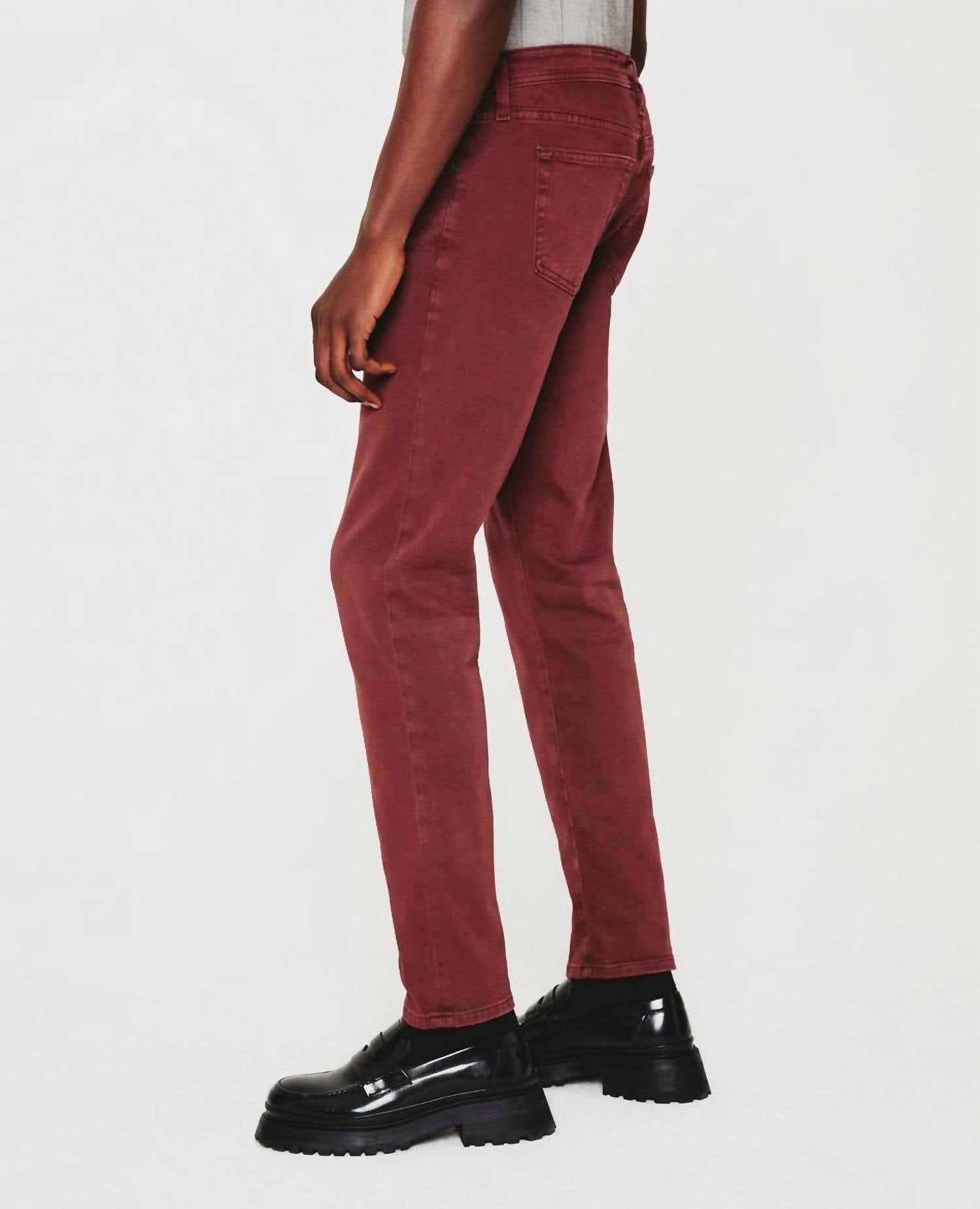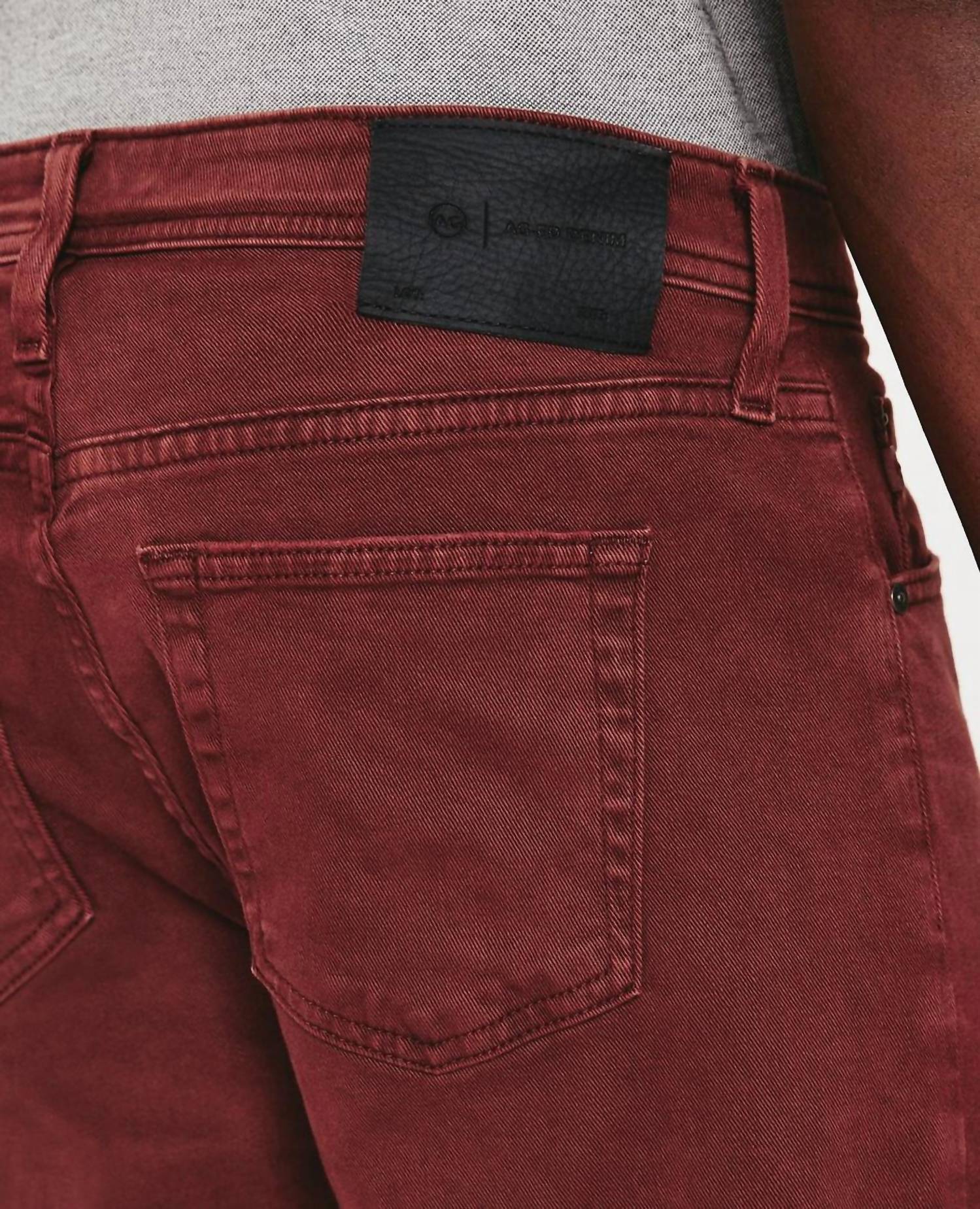 The Tellis is cut with a fitted upper block and tapered leg opening. 7 Years Sulfur Sangria features a rich, autumnal red shade that's been broken in with subtle fading and gently worn pocket edges. This denim is designed in 8.7 oz. Hyper Soft White Bull Denim, a left-hand twill fabric that allows the yarns to gently relax and untwist for a supple, velvety-soft feel. It's designed to get even softer as you wear it. Dual-elastic stretch offers added comfort and enhanced recovery. 93% Cotton, 6% Polyester, 1% Elastane. Imported. Front Rise: 10" Knee Opening: 15 7/8" Bottom Opening: 13 3/4" Inseam: 33" Fits true to size.