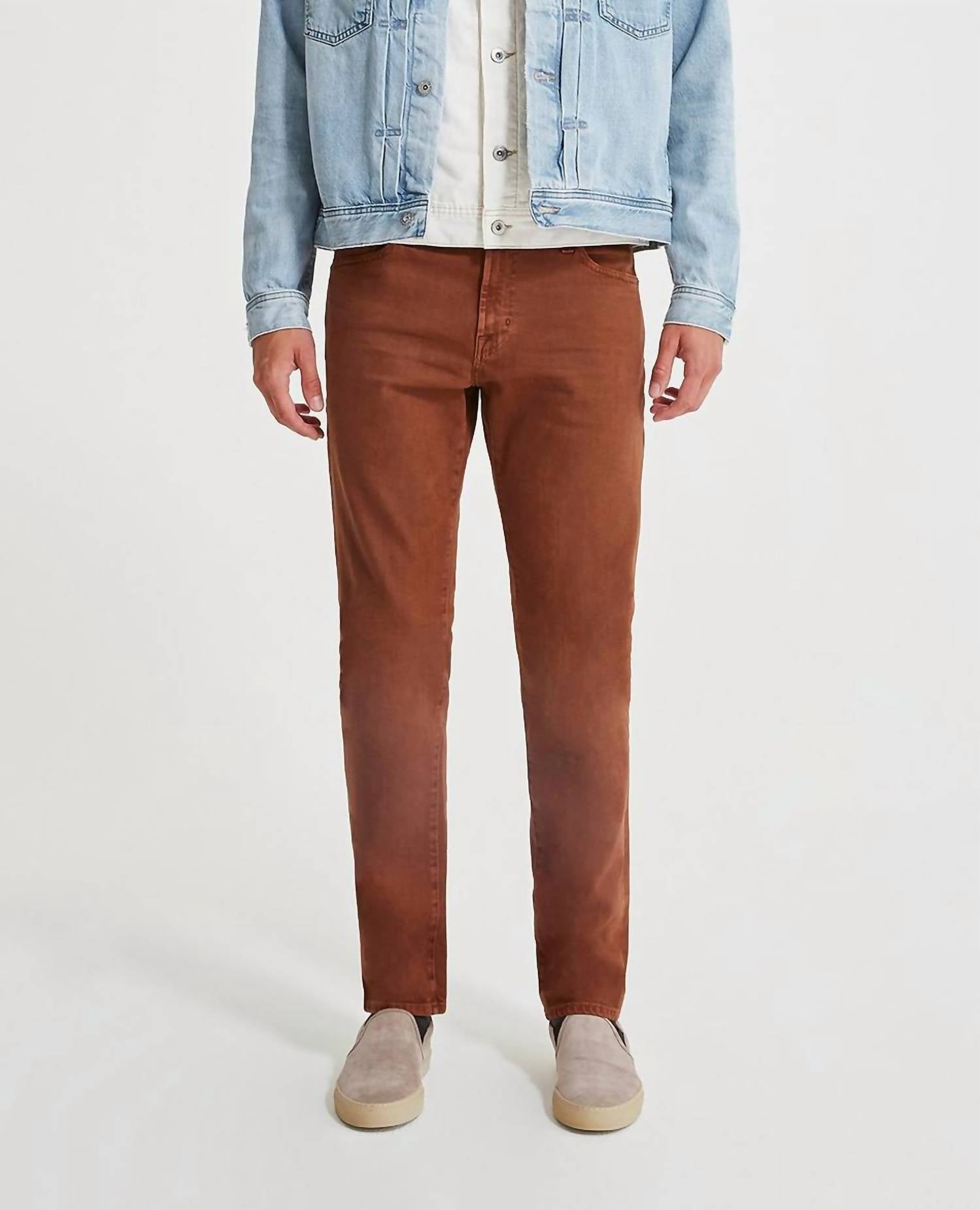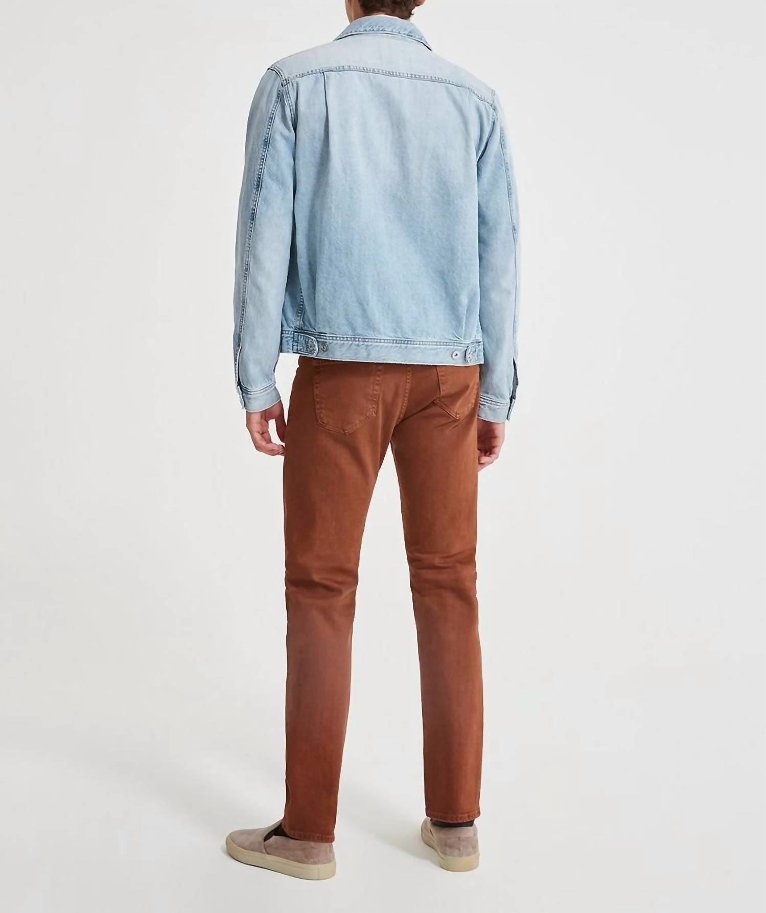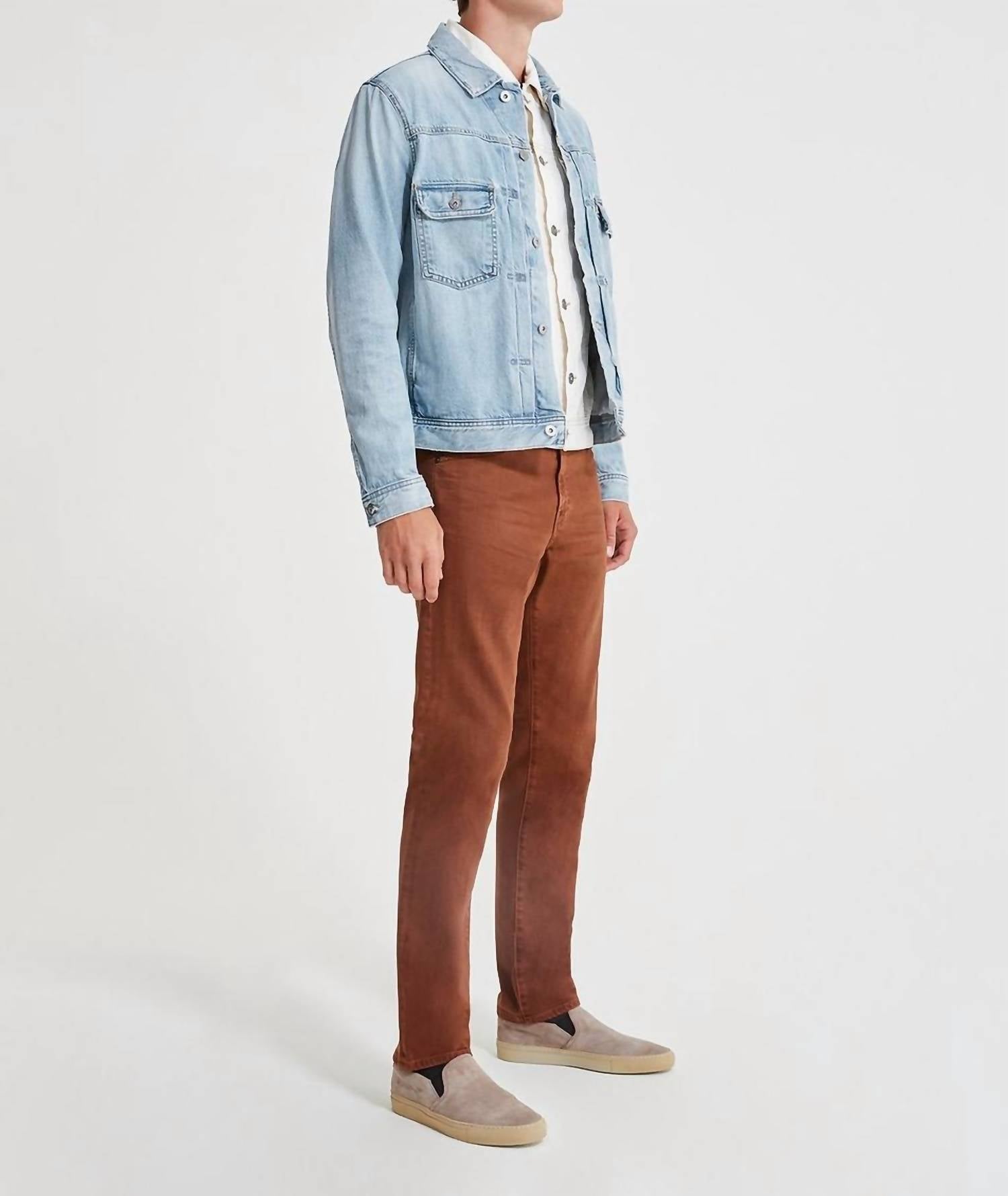 Tellis Modern Slim Jean for men features an authentic, 7-year vintage warm tawny denim wash that’s been uniquely distressed and faded down to mimic a pair of genuine vintage jeans. The Tellis is cut with a fitted upper block and tapered leg opening. This men’s pant is designed in a lightweight denim with comfortable stretch and finished with a clean hardware. 10 Oz. Dover Stretch Denim, 98% Cotton, 2% Polyurethane. Model is 6'2" & wearing size 30. Front Rise: 9.75". Knee Opening: 16". Bottom Opening: 14". Inseam: 33". True to size. Machine wash cold.