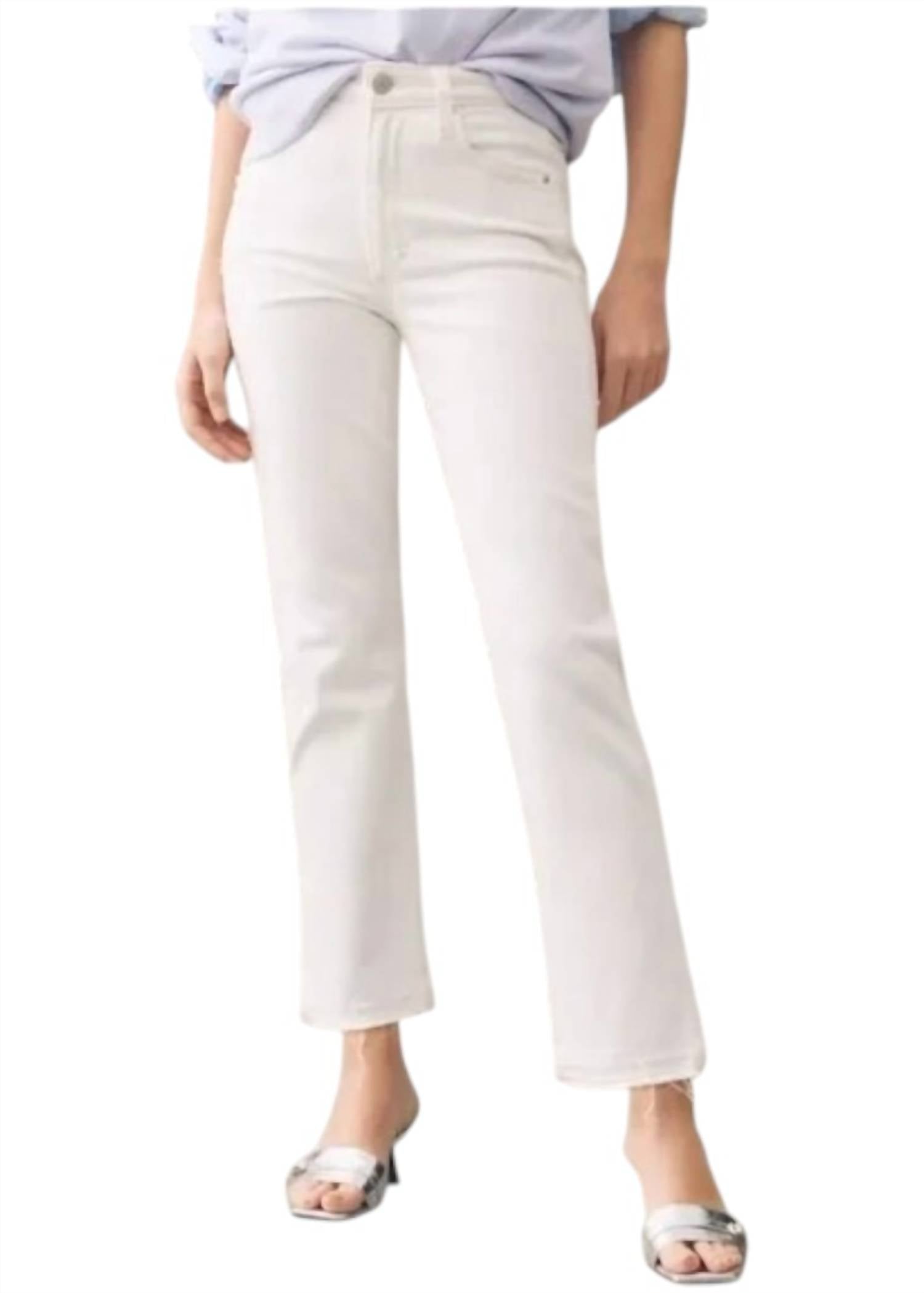 Tuck your favorite tee into these high-waist jeans for a more casual-cool feel. Introducing the Chloe Crop Jeans by AMO in White Sands, perfect for a modern streetwear vibe. These high-rise jeans feature a straight, cropped leg with a released hem, and are crafted from a Cotton Blend for a figure-flattering fit. The jeans come with a zip closure, 5-pocket styling, and offer a mid-weight denim feel with a touch of stretch for comfort. Measurements include a 26" inseam, 10.75" front rise, and a 13" leg opening; care instructions are machine wash cold with a tumble dry on low heat.