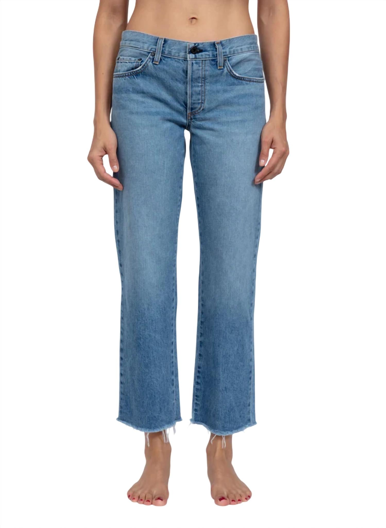 This classic straight leg jean has a perfect fit and goes with just about everything. Low rise straight non-stretch. 8.5" Rise, 29" Inseam, 16" Leg opening. Model is 5'9" wearing a size 25. Machine wash cold. 11 oz. Japanese denim. Made in Los Angeles.