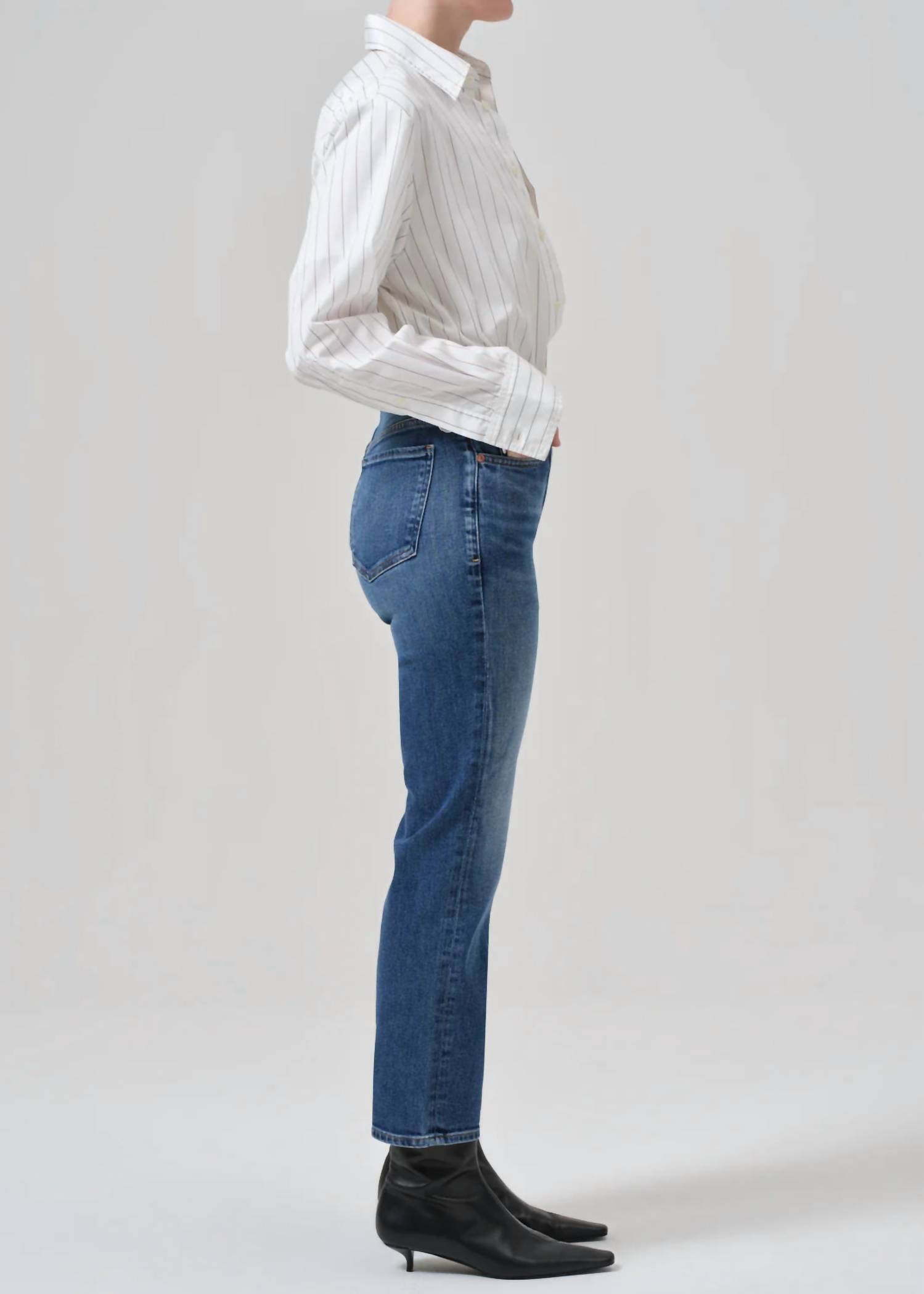 Comfortable and stylish, we love this cropped jean for all of the obvious reasons. Elevate your denim collection with Citizens of Humanity's Zurie Ankle Jean, crafted to perfection with a 98% Cotton and 2% Polyurethane blend. These abalone-colored, straight-leg jeans feature a contoured waist and a sculpted leg that elegantly enhances your silhouette with its subtle bowed shape. With a rise of 11.25 inches and an inseam of 27.5 inches, the design ensures a flattering fit, complemented by a convenient zip fly closure. Made from imported materials, this piece promises style and comfort in equal measure.