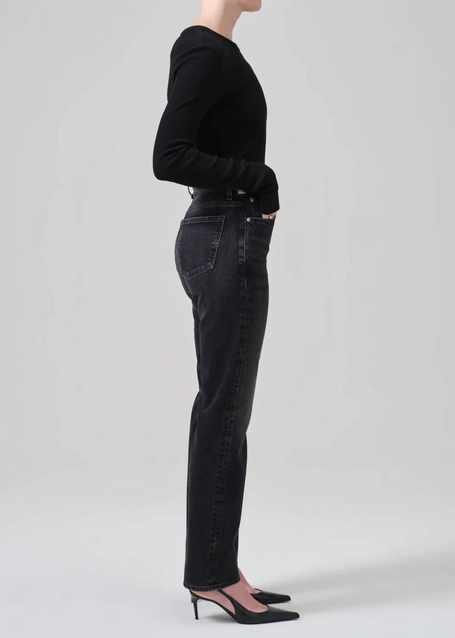 This classic straight leg jean has a perfect fit and goes with just about everything. Discover effortless style with the Zurie High Waist Straight Leg Jeans by Citizens of Humanity, designed in a solid Stormy hue. These straight-leg jeans feature a high 11.5" rise and have a relaxed, comfort fit with a leg opening of 15.75". Meticulously crafted from a cotton blend, they offer the timeless appeal of rigid denim with the comfort of stretch. Closure comes via a button and zip fly, and for care, simply machine wash and tumble dry. The inseam measures 31.75", providing a classic fit that combines vintage inspiration with modern comfort.