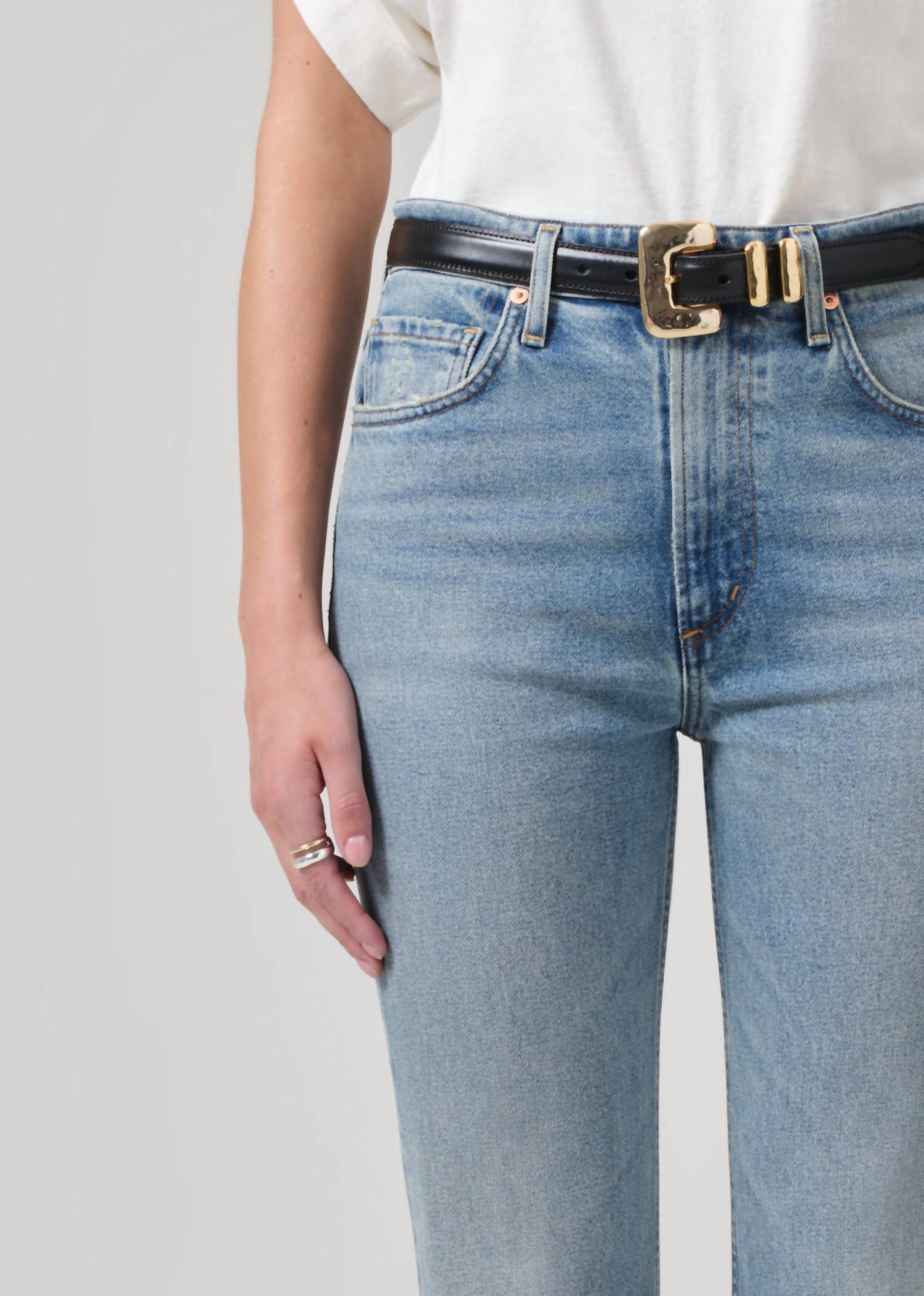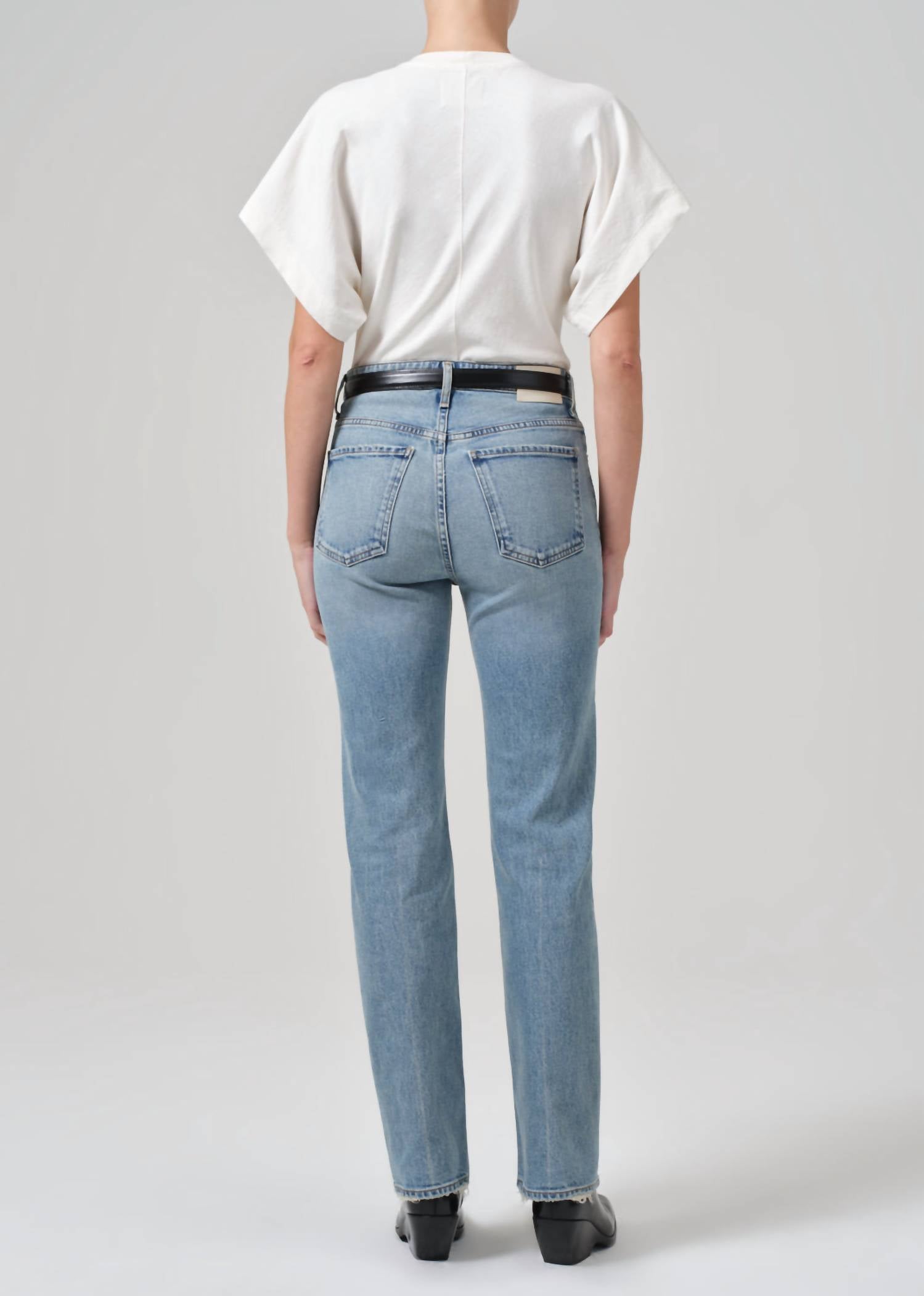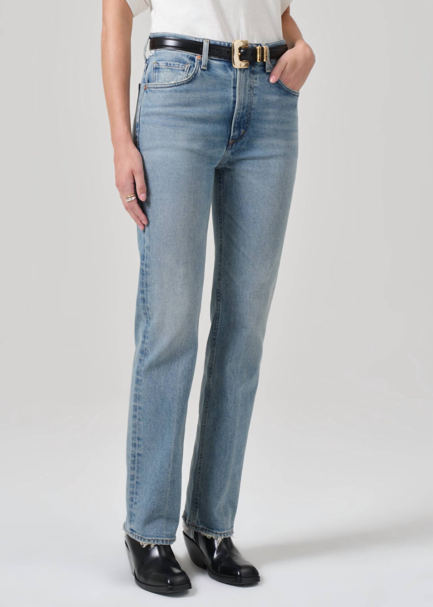 These must-have jeans are fit to perfection. Elevate your denim collection with the Zurie Straight Leg Jeans by Citizens of Humanity, crafted in the striking Glendale color. These jeans boast a high-rise with an 11 3/4" rise and 31 3/4" inseam, ensuring a perfect fit and elegant look. Made from a comfortable 98% Cotton and 2% Polyurethane blend, they feature a zip fly closure and solid pocket detailing. Enjoy effortless care with a machine wash cold inside out and tumble dry low for convenience. Model: 5'10", wearing size 27.