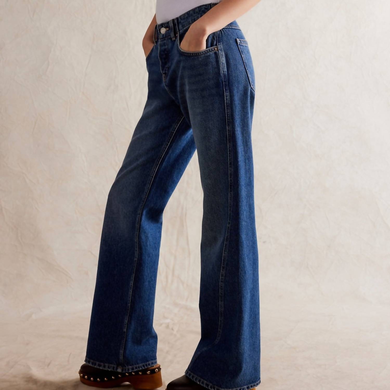 A flattering silhouette that's suprisingly versatile. Presenting the Expert Advice Flare Jeans by Free People, a stylish choice in Seabrushed blue for any discerning wardrobe. These jeans feature a relaxed fit with a flared leg and a mid-rise, offering a 32" inseam and 24" leg opening for a flattering silhouette. Made from 100% cotton, the nonstretch denim provides timeless comfort and durability. With a classic five-pocket style, they secure with a zip fly and button closure.