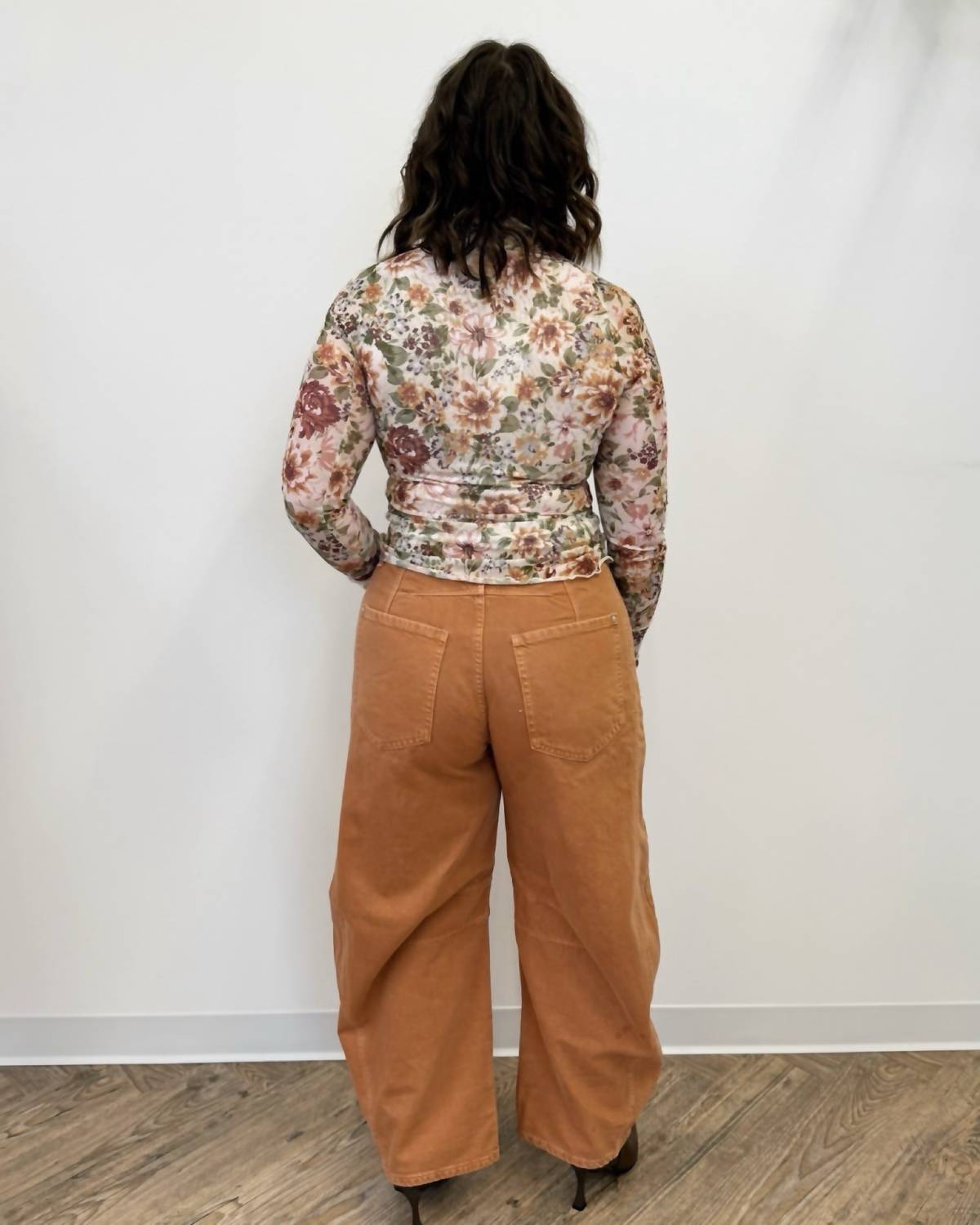 These must-have jeans are fit to perfection. Introducing the Ginger Root-colored Good Luck Mid Rise Barrel Jeans by Free People, designed for the modern woman seeking comfort and style. These mid-rise jeans feature a relaxed fit with wide legs that taper at the ankle, crafted from a durable cotton blend of 57% Cotton and 43% Lyocell. The jeans include a functional four-pocket design, finished with a button closure. Easy to care for, simply machine wash and tumble dry.