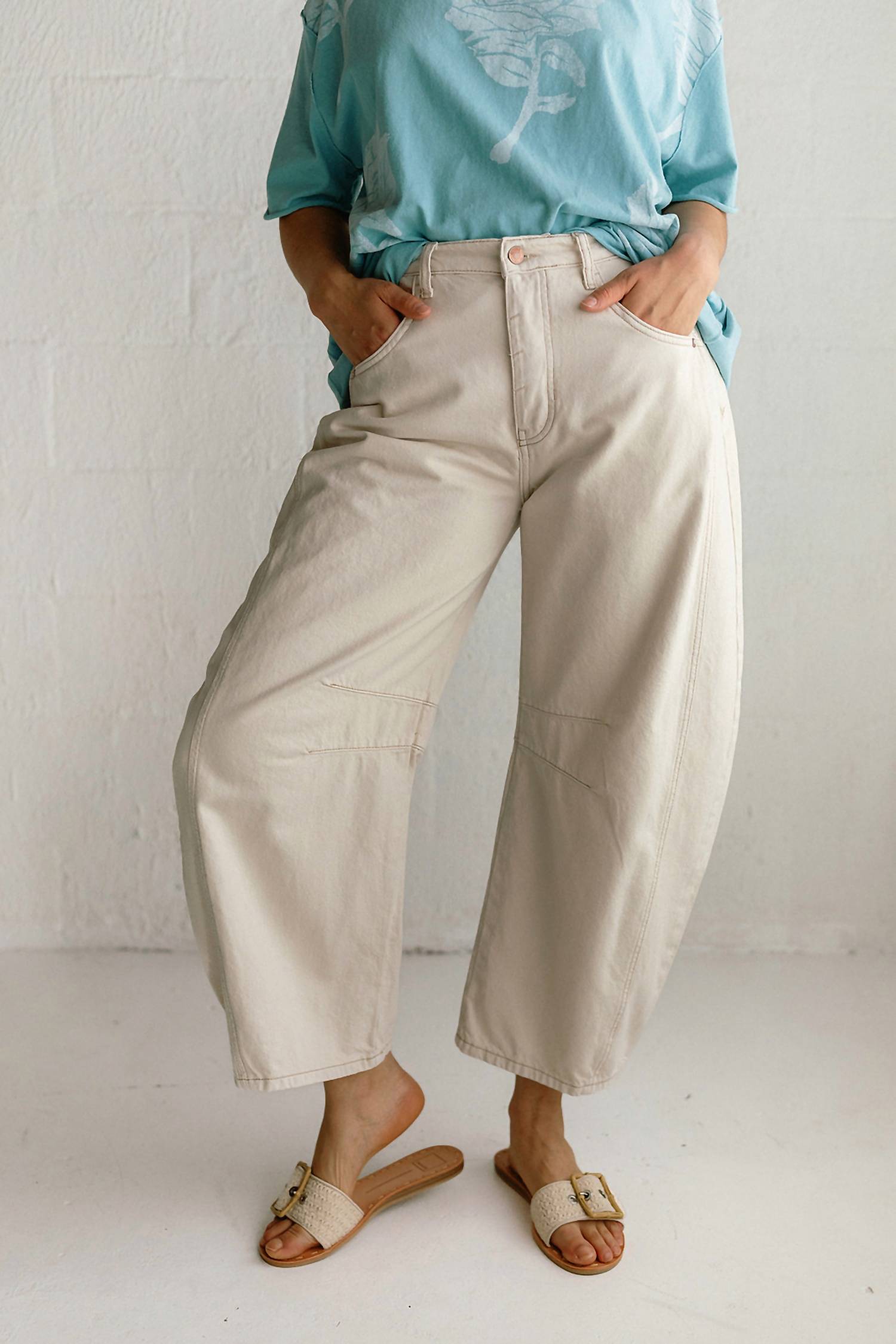 Just as cute as they are comfortable. Featured in a mid-rise fit with subtle distressed detailing and wide-legs that taper at the ankle. Runs slightly large; recommended sizing down one size. 57% Cotton, 43% Lyocell. (Measurements for size 28) Inseam: 26 inches; Waist: 32.50 inches; Hips: 44 inches; Rise: 12.12 inches.