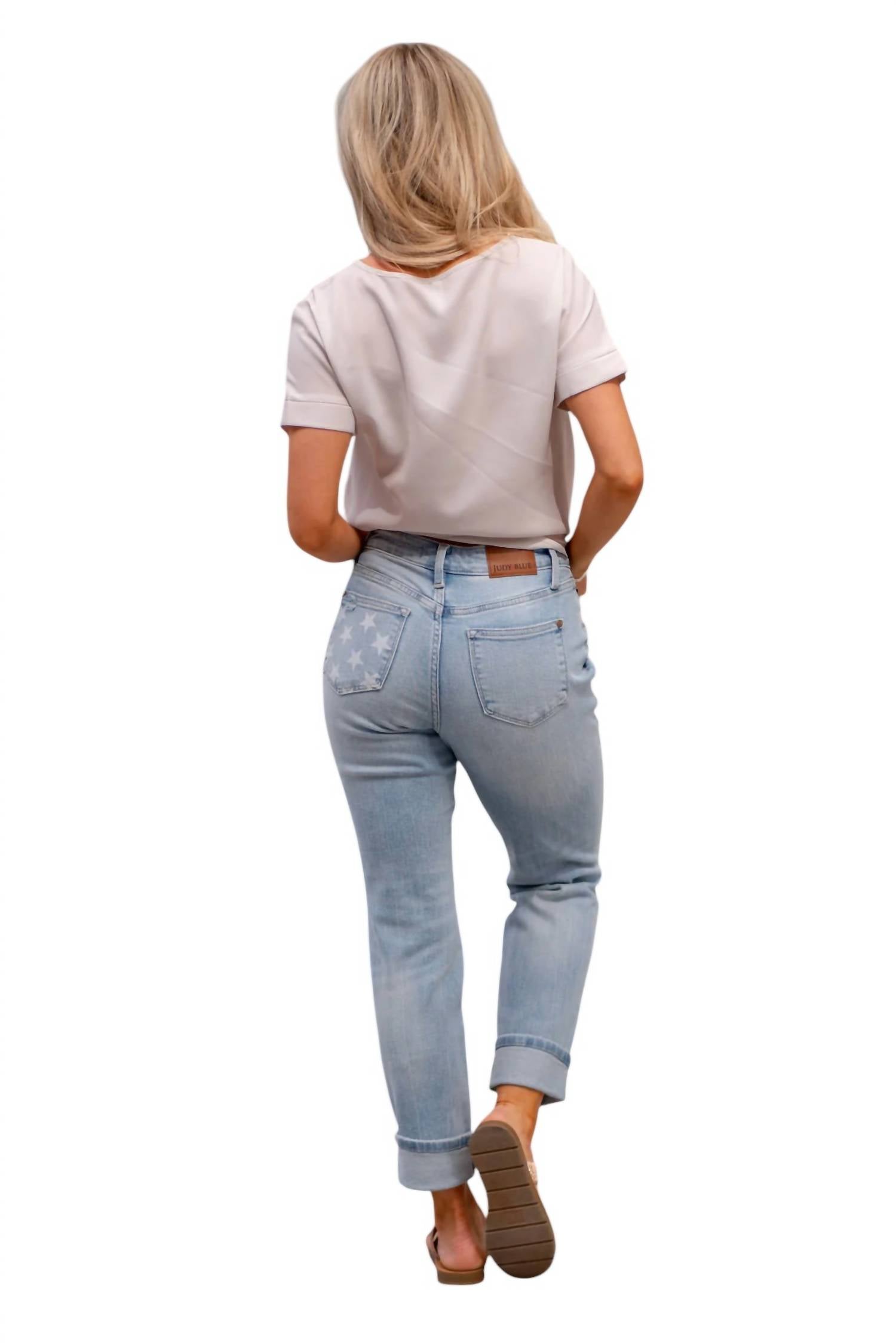 This classic straight leg jean has a perfect fit and goes with just about everything. These mid-rise boyfriend jeans feature a straight leg, cuffed design, zipper fly, pockets, and classic stitching. They are made from 94% cotton, 5% polyester, and 1% spandex, with a 10.25" front rise and inseam options of 28" (cuffed) or 31" (uncuffed).
