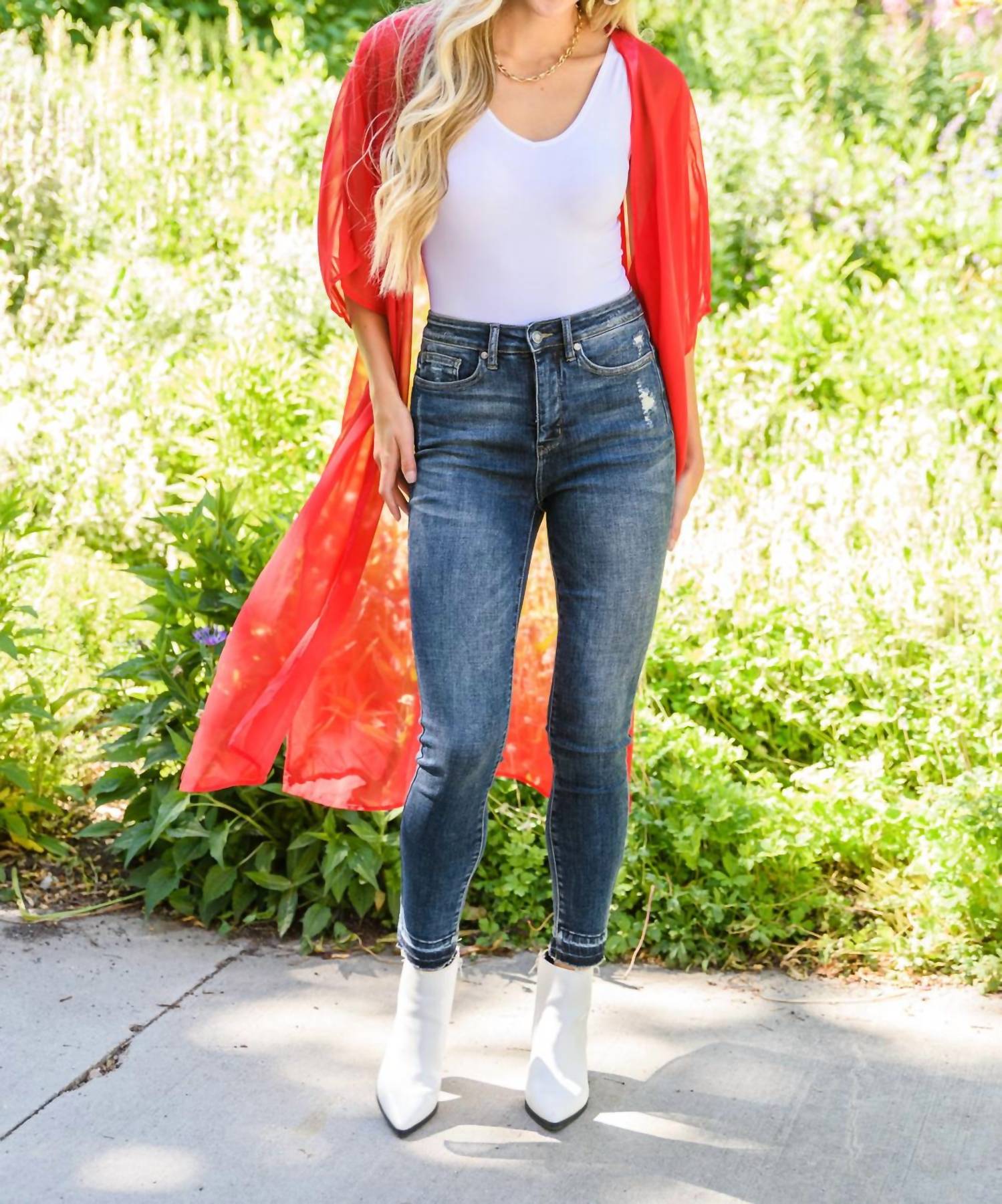 Fit to perfection, we love these high-waist jeans and you will too.4-Way Stretch + Hi-Rise. Tummy Control + Skinny. 93% Cotton, 6% Polyester, 1% Spandex. Wash Cold, Hang Dry. True to size.