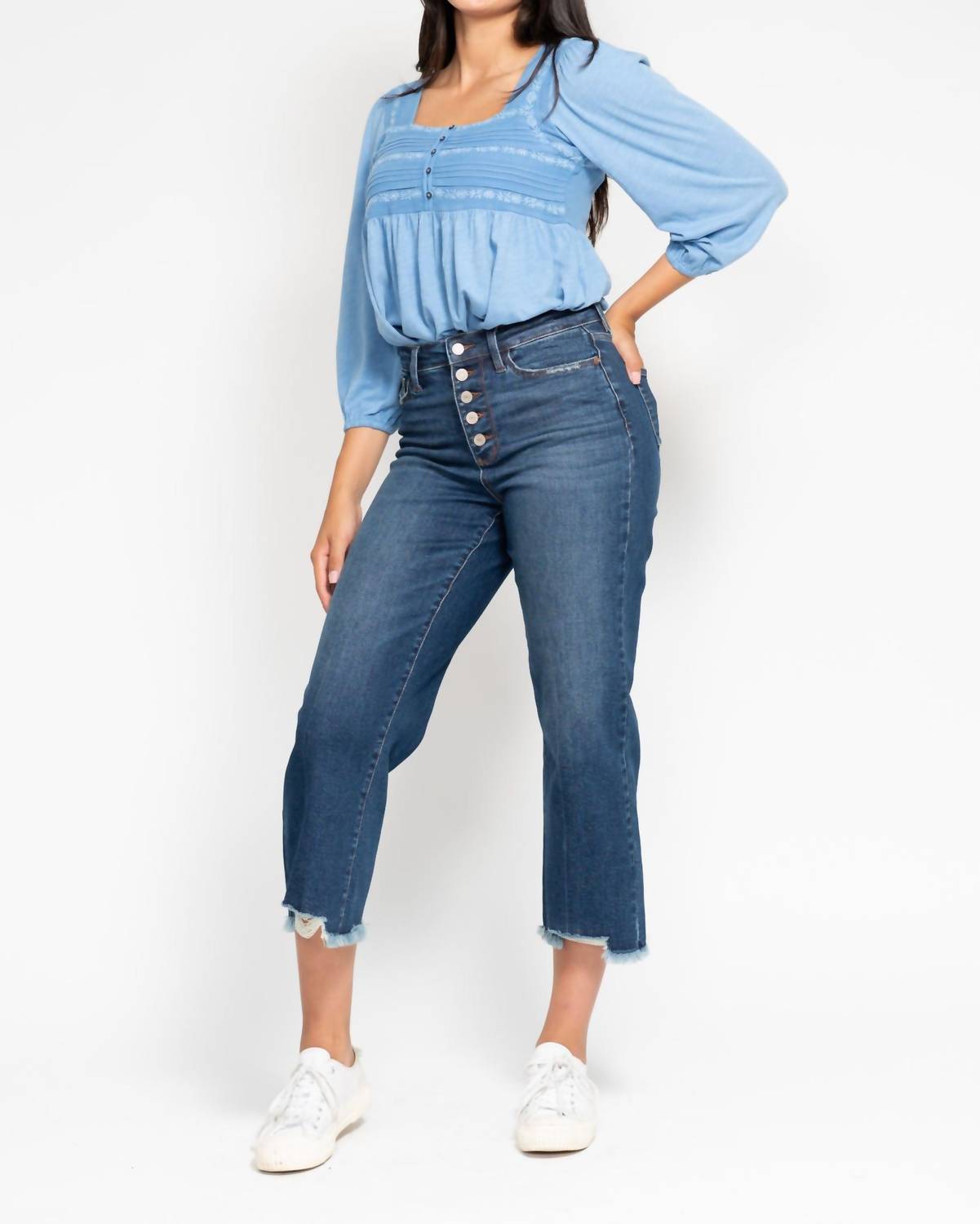 The trend report says boot-cut is in and that's exactly why we love this style. They are fit to perfection, flattering on any body type, and comfortable. They will be your go-to all season long. Elevate your denim collection with the Judy Blue High Waist Button Fly Jeans, crafted for the modern woman. These medium wash jeans boast a relaxed fit and a fashionable bootcut leg, enhanced by a flattering high rise of 11 inches. Composed of 94% cotton, 5% polyester, and 1% spandex, they offer comfort and durability with a stylish button closure. Care is a breeze—simply machine wash and tumble dry, making these jeans perfect for streetwear style in the sunny summer seasons.