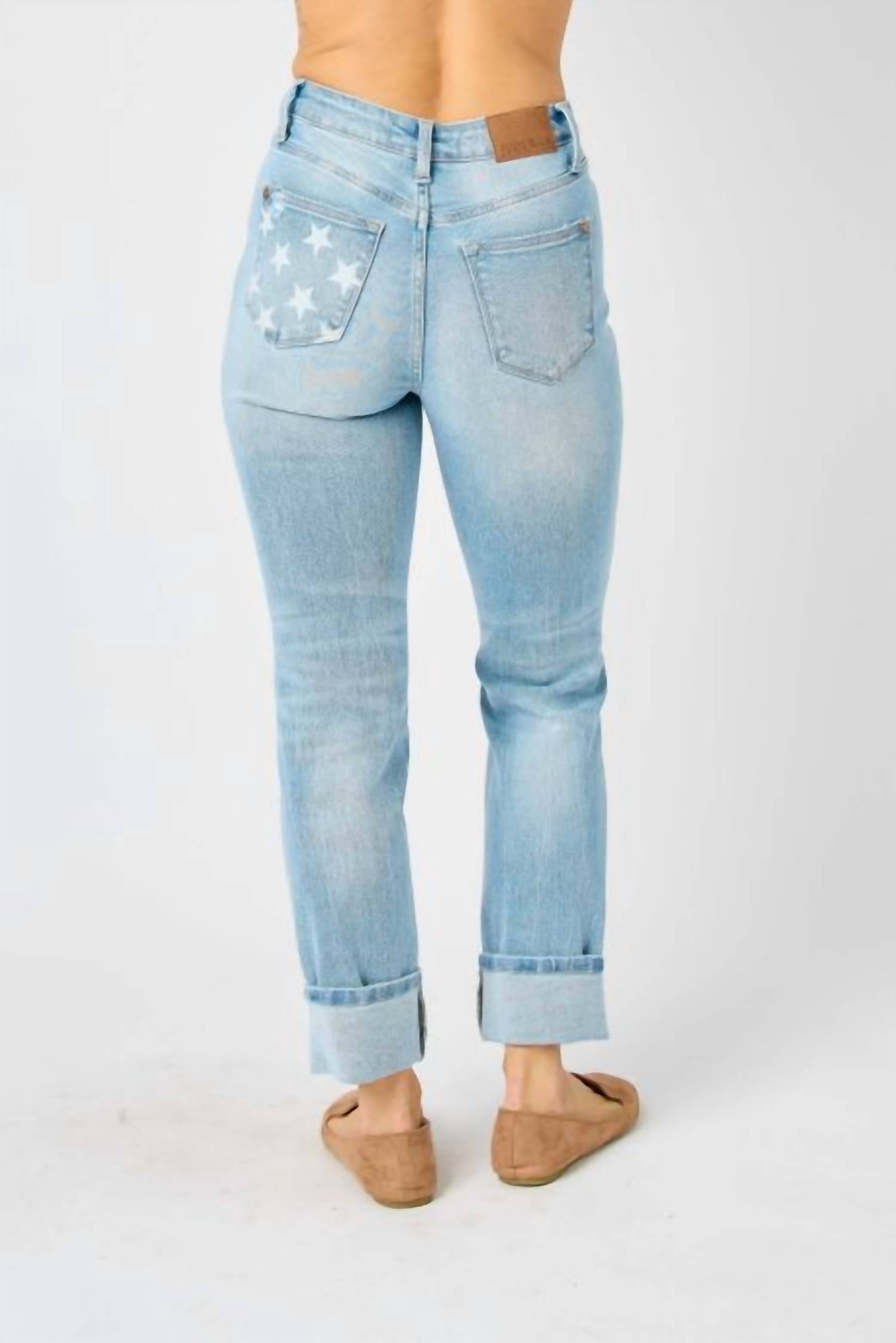 Judy Blue - Mid Rise Americana Flag Cuff Boyfriend Jean