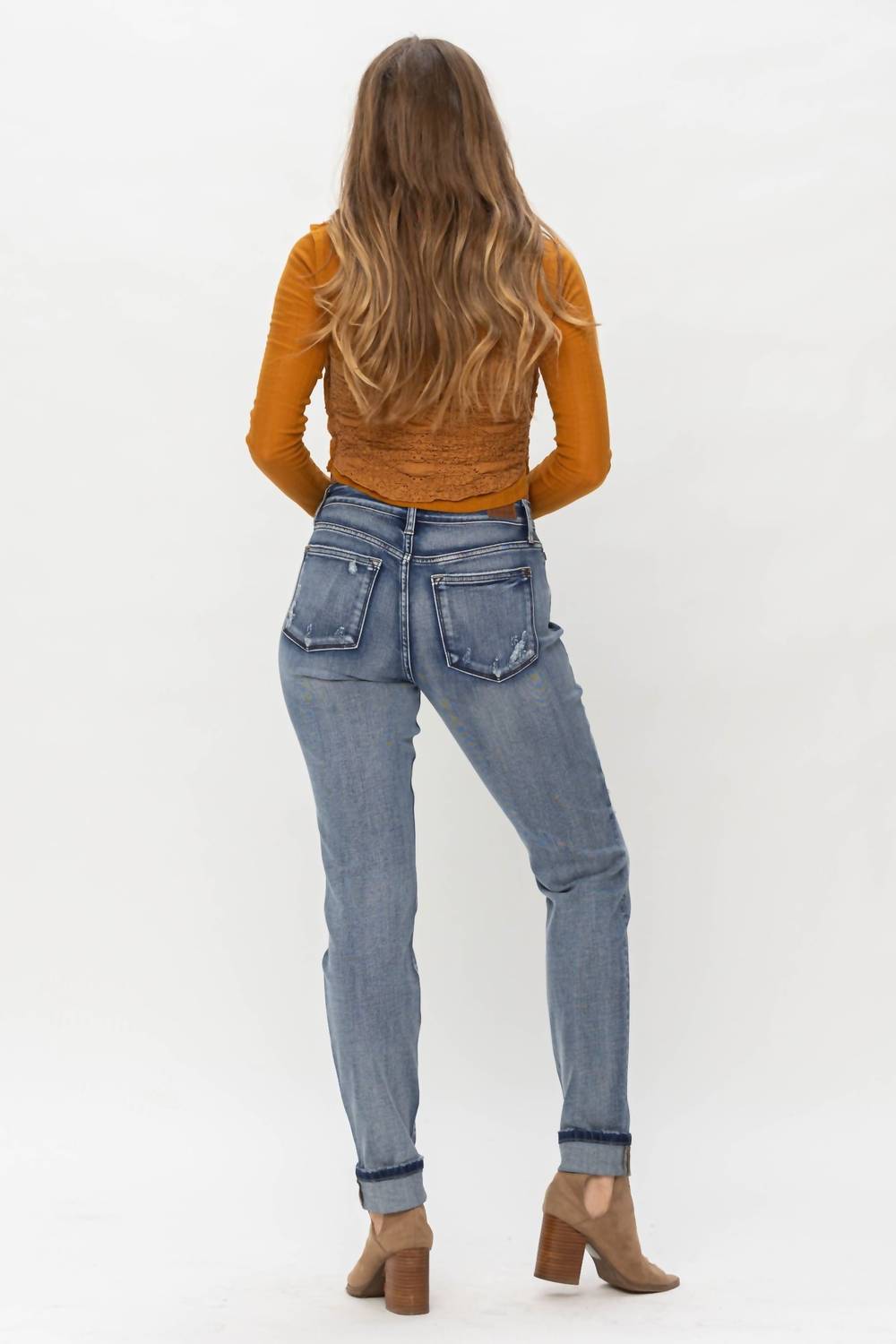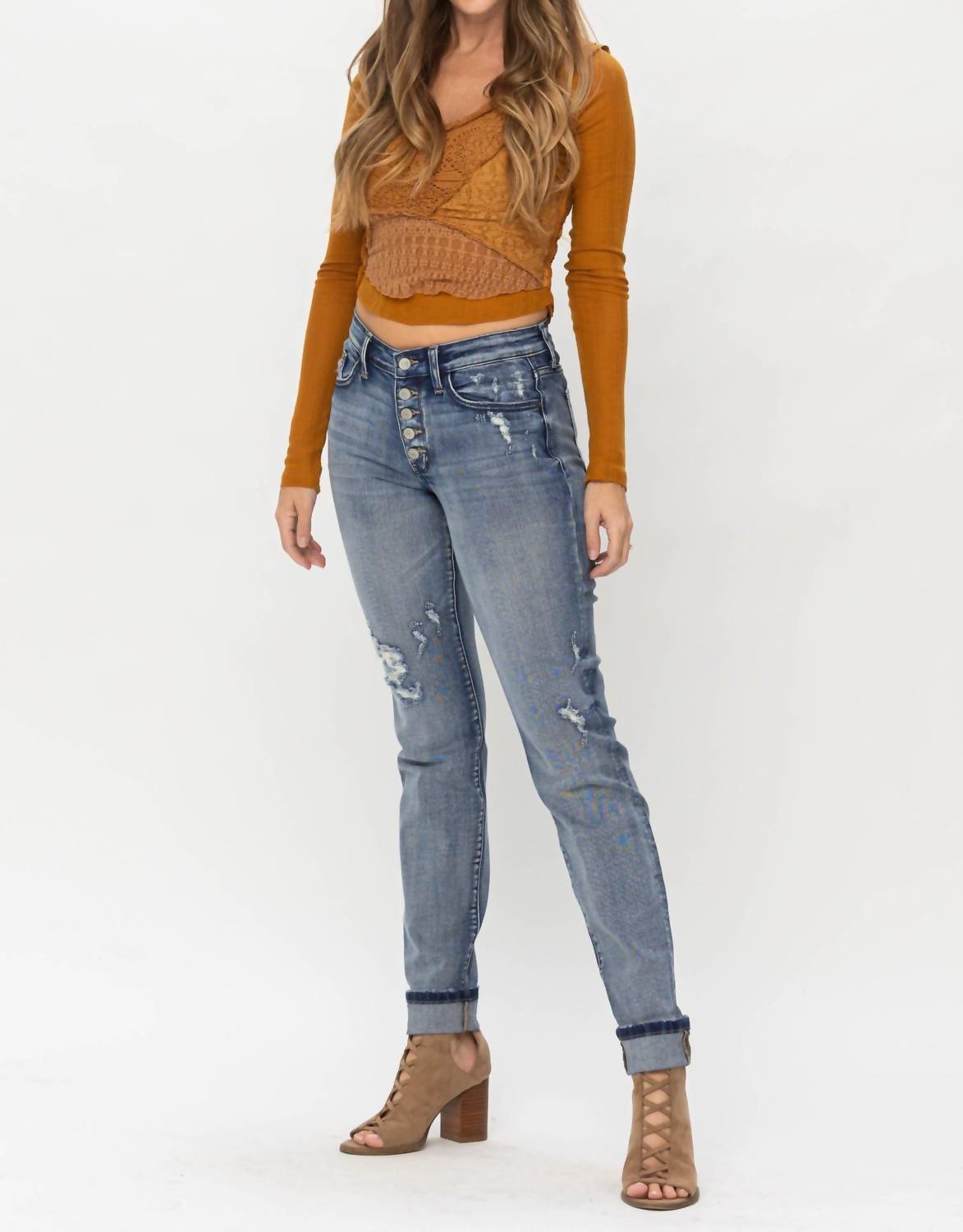 Judy Blue - Mid Rise Button Fly & Cuff Options Tall Boyfriend Denim Jeans