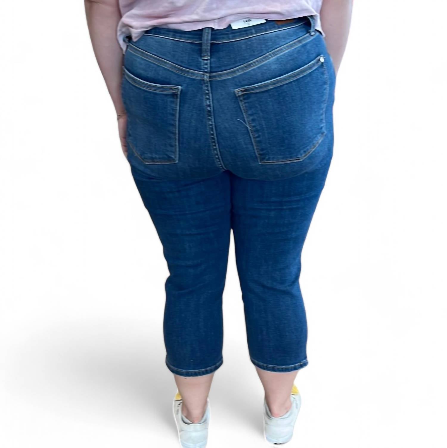 The perfect cropped jean for those transitional seasons.This capri jean features a zip fly with button closure, 5-pocket styling, and side slits for added flair. Made from denim, it is machine washable in cold water for easy care.