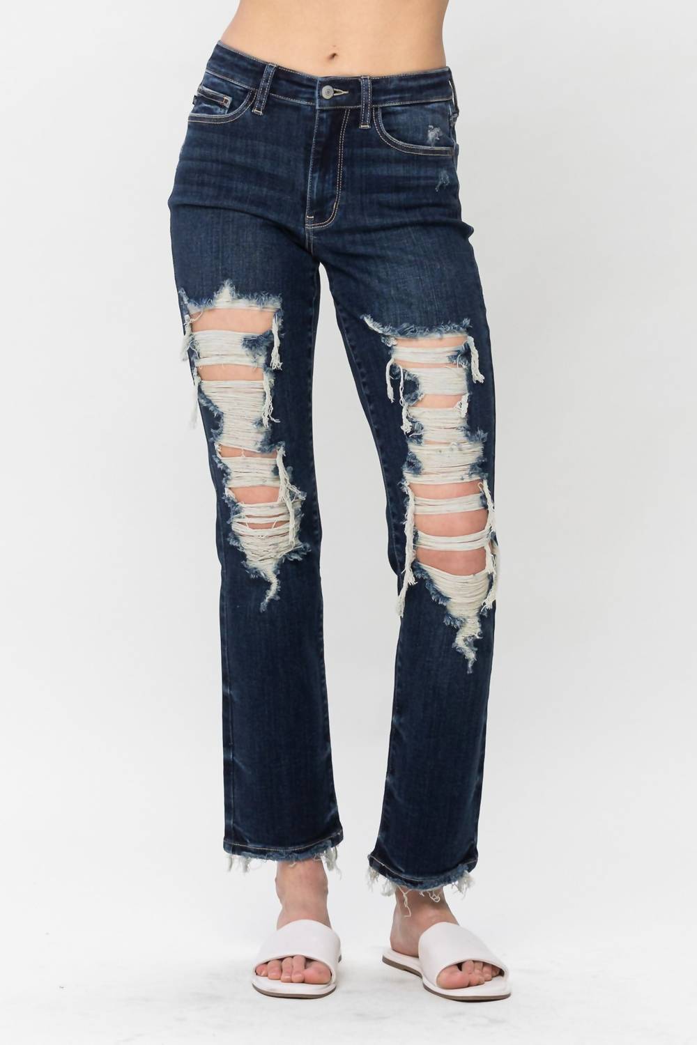 Judy Blue - Mid Rise Ripped Straight Denim Jeans