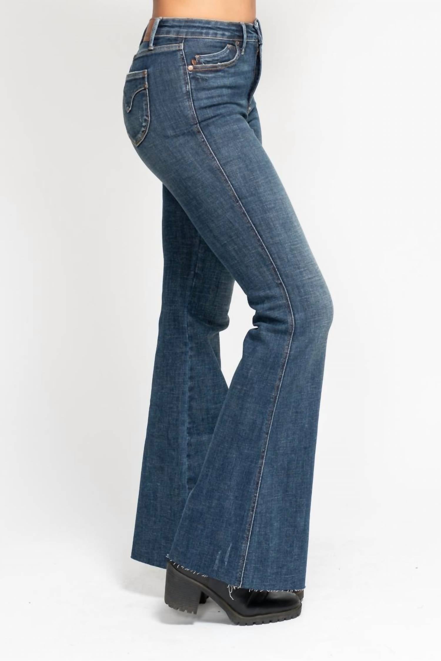 Pair these wide leg jeans with mules, slides or your favorite strappy sandals. Sleek light wash, designed for an effortlessly chic look. Crafted from a blend of 91.4% cotton, 7.4% polyester, and 1.2% spandex. Mid-rise jeans offer tummy control without sacrificing comfort. With raw hems and a flared leg style. Flaunt non-distressed, solid coloring for a classic appeal. Featuring a button closure and functional shield back pockets. Front rise of 10.75 inches and an inseam of 33.5 inches. Care for them by machine washing and tumble drying for easy maintenance.