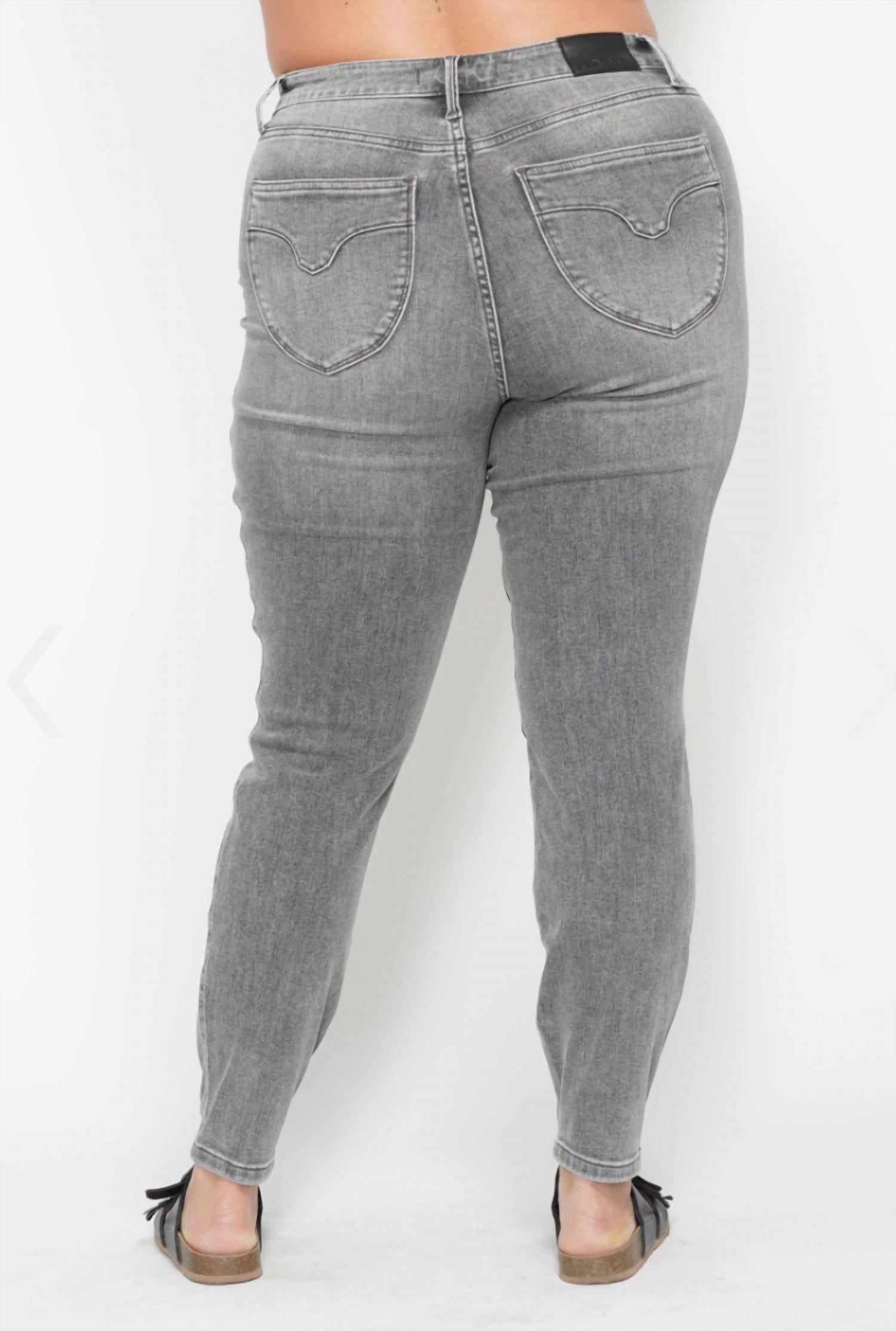The perfect skinny jeans to wear with your favorite boots this season! Introducing the Judy Blue Grey Shield Pocket Skinny Jeans, designed to provide a chic and edgy look with unparalleled comfort. These skinny jeans feature a tummy control design and a stylish shield pocket, perfect for enhancing your silhouette. Made from a cotton blend with 92% Cotton, 7% Polyester, and 1% Spandex, they offer a comfortable and flexible fit. The mid-rise style boasts an 11.5" rise and a 29" inseam, ensuring a flattering fit that's true to size. Closure: Button. These must-have jeans will keep you confident and stylish all day long.