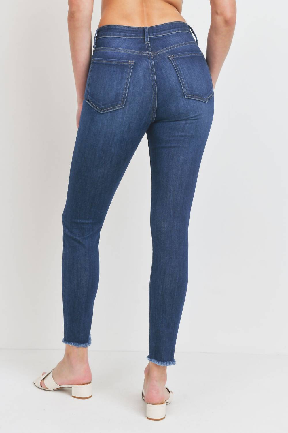 Everyone needs a good pair of skinny jeans and this is a style you'll keep reaching for no matter the season.5-pocket style. Zip fly and button closure. Skinny jeans. Premium dark denim. Trendy fray-end detail. Stretch denim for a flattering silhouette. 100% Cotton. Machine wash cold.