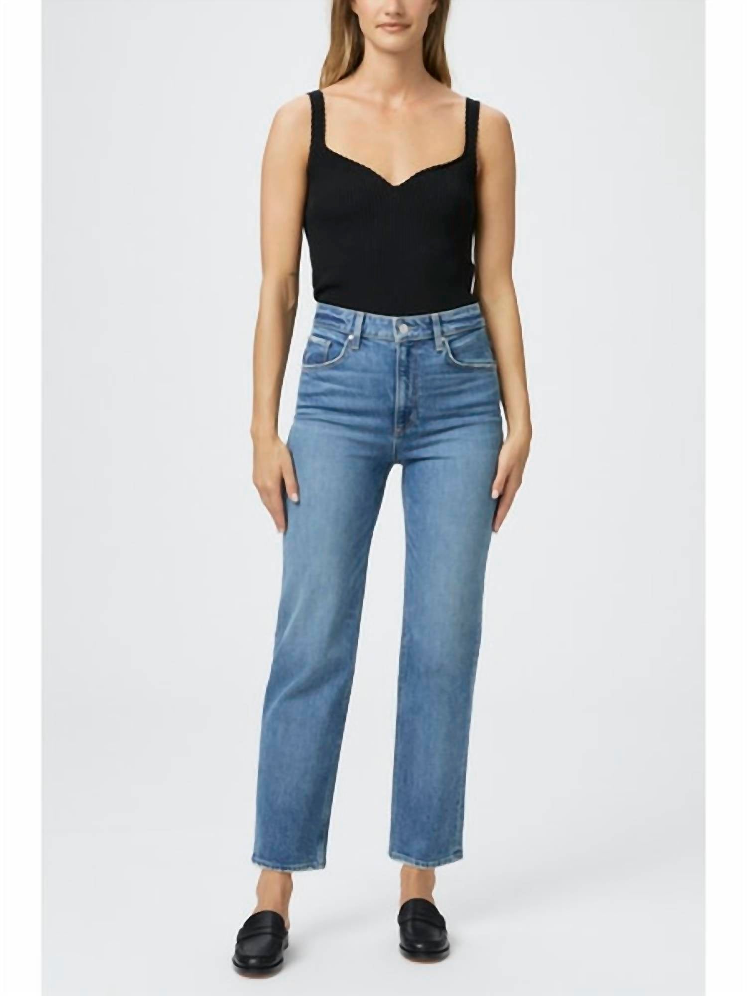 A straightleg pant that workes season after season. Dress these up with your favorite blouse or keep it casual with your go-to tee. Discover the Sarah Straight Ankle Jean by Paige, offering a high-waisted straight leg silhouette that finishes at the ankle for a flattering fit. Crafted in textured Provocateur color, these jeans are composed of 99% organic cotton and 1% elastane, blending comfort with sustainable design. Featuring a 10.75” rise, a 28” inseam, and a 15” leg opening, this piece combines style with effortless functionality. Closure: Zip closure. Origin: Imported.
