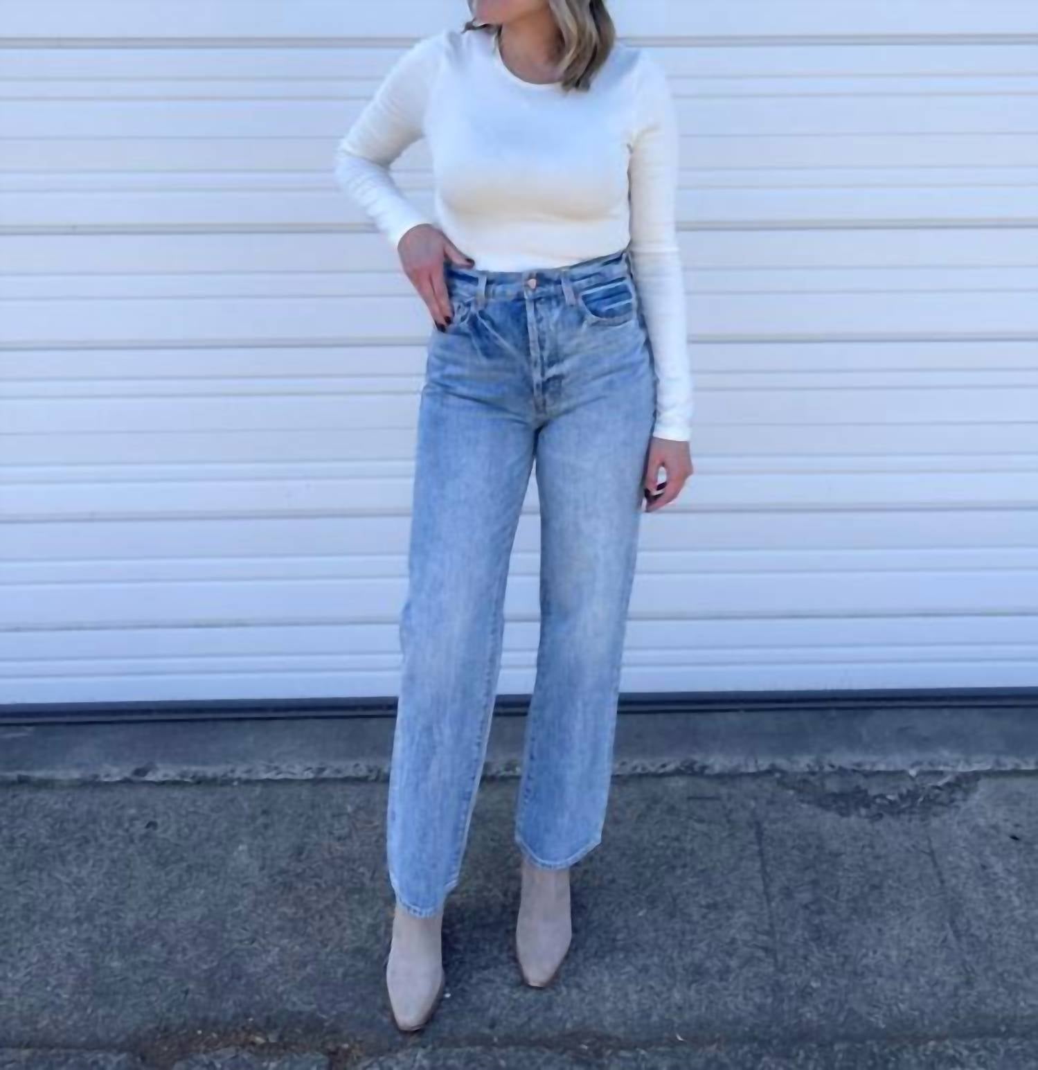 Pair these straight leg jeans with flats, sandals or even heels! You can't go wrong. Meet your new wardrobe staple: the Gabriela Full Length Straight Jeans by PISTOLA, crafted from structured denim for a timeless appeal. These high-rise jeans feature a light wash and comfort fit, making them a must-have for stylish, all-day wear without compromise on comfort. As a fashionable touch, they come with a button closure and classic straight leg style, providing a versatile fit that suits any occasion. Perfectly solid in pattern, these jeans effortlessly pair with any top, ready to be your ideal companion for the winter season.