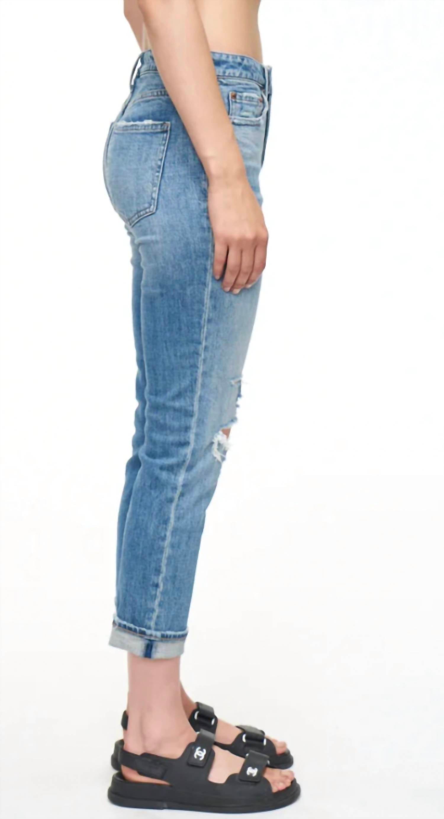 This classic straight leg jean has a perfect fit and goes with just about everything.The Jessie is a mid rise slim straight that hugs your body in a comfort stretch. This is ankle length in harbor distressed wash with knee distressing. 72% Cotton / 27% Rayon / 1% Spandex• Rise: 10" • Inseam: 27.5" • Leg Opening: 13" • True to size • Model is 5'9" wearing size 26
