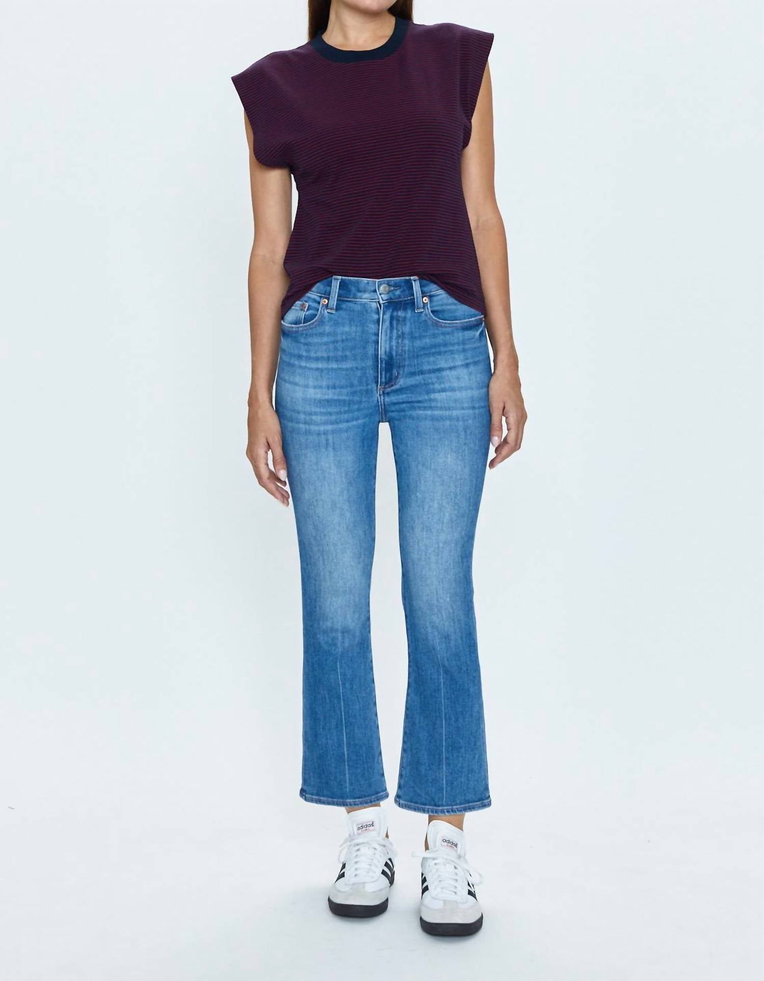 Tuck your favorite tee into these high-waist jeans for a more casual-cool feel. This Lennon High Rise Bootcut Jean features a high-rise waist, 27” inseam, and bootcut leg style. Crafted from a 95% cotton, 4% polyester, 1% elastane or 99% cotton, 1% elastane blend with a hint of stretch, it has a button closure and is machine washable for easy care.