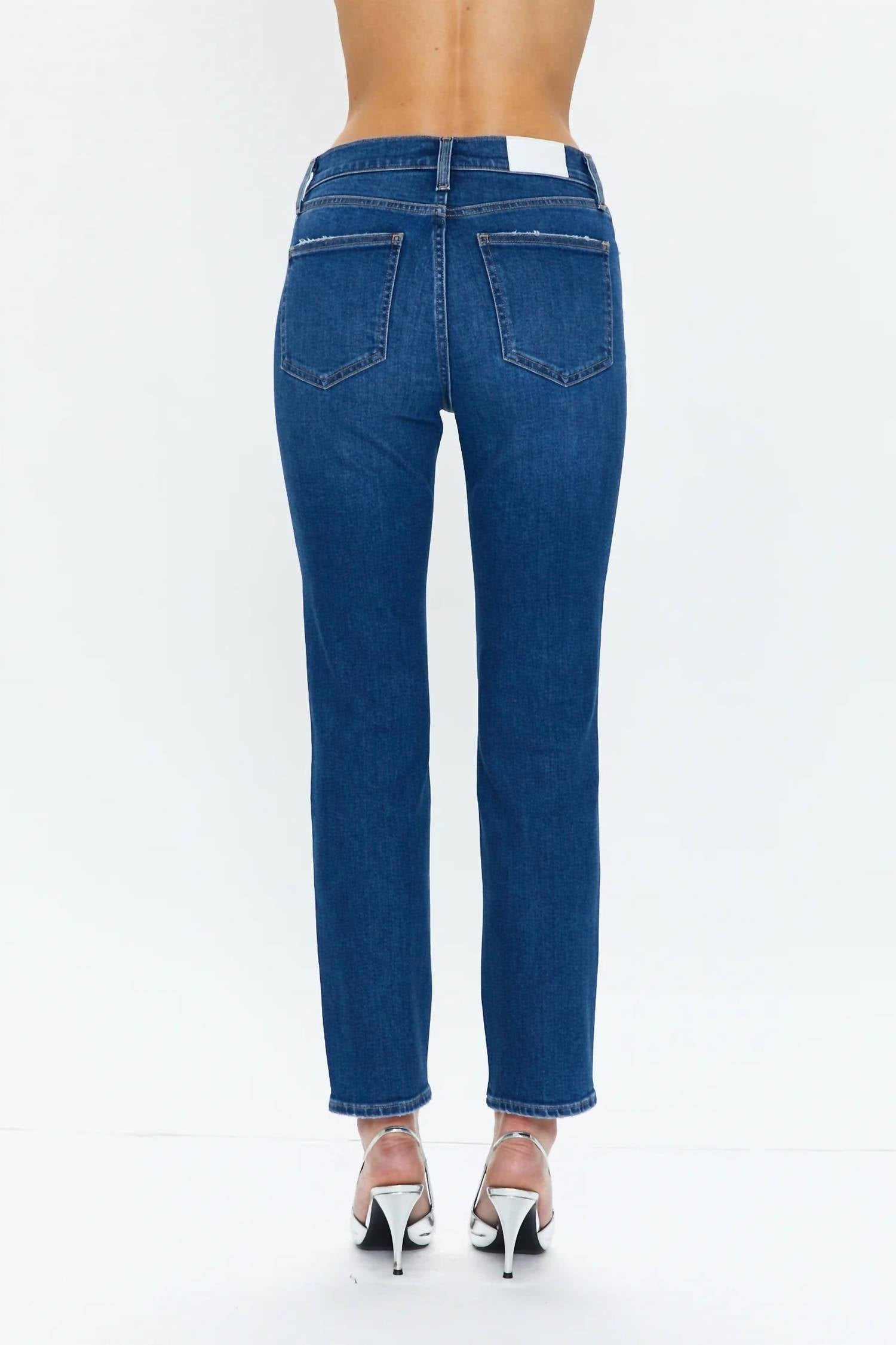 These must-have jeans are fit to perfection. Enhance your wardrobe with the Monroe Straight Jean by PISTOLA, designed for both comfort and sophistication. These Brighton jeans boast a solid pattern and are crafted from a cotton blend, featuring 94% cotton, 5% polyester, and 1% elastane. The high-rise design and regular fit define a flattering silhouette, complemented by a button closure and functional pockets. Perfect for travel and streetwear occasions, and easily maintained with machine wash care.