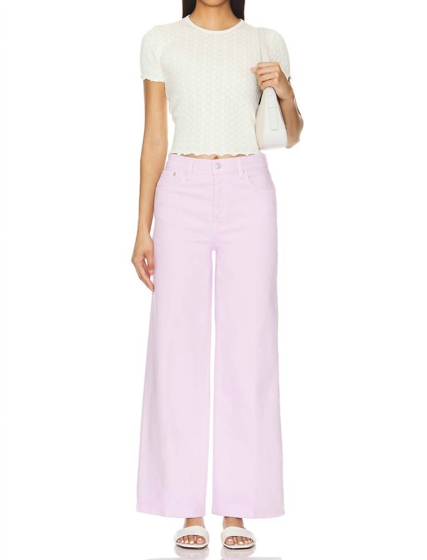 A flattering silhouette that's suprisingly versatile. Discover effortless style with the Getty Wide Leg Jeans by Rails, designed in a chic lilac hue. Constructed from cotton, these jeans boast a solid pattern with a high-rise waist and a relaxed, wide-leg fit. Originating from Turkey, they feature a functional zip closure and practical pockets. For easy maintenance, simply machine wash and tumble dry.