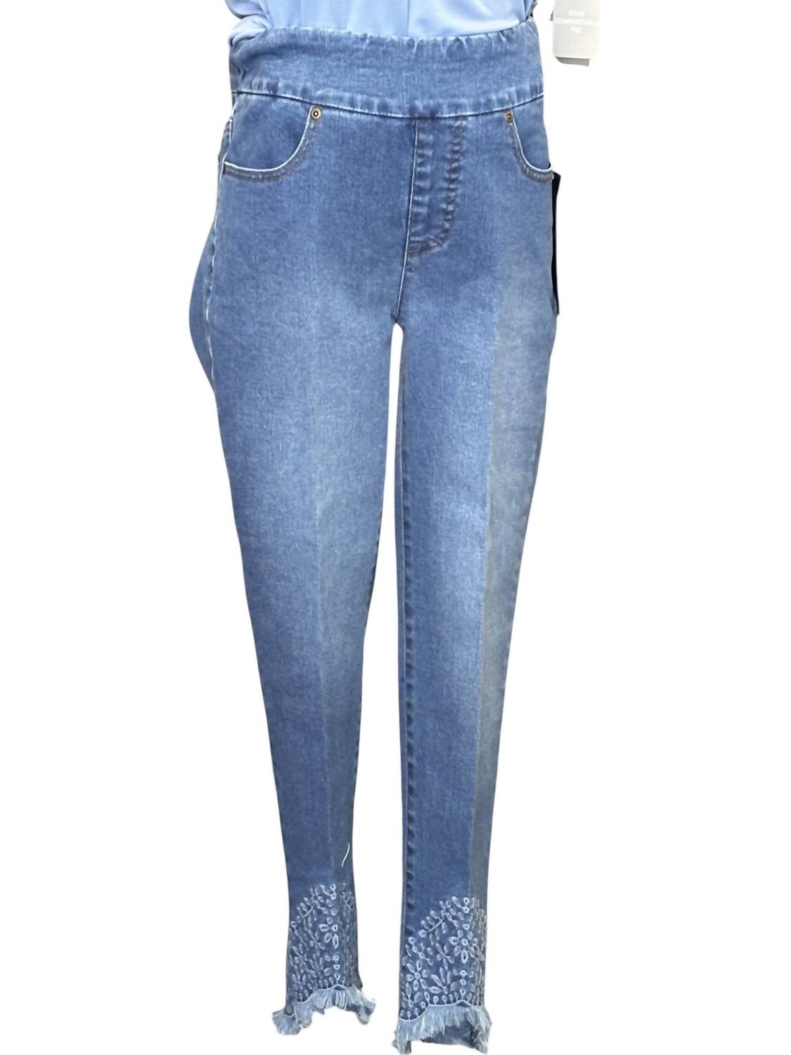 Slimsation By Multiples - Embroidered Scallop Hem Jean