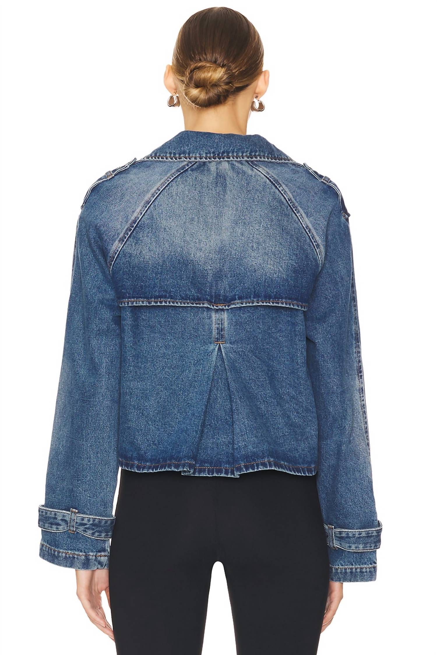 Enhance your wardrobe with the Sirus Jean Jacket by STEVE MADDEN, crafted in classic blue denim. Featuring long sleeves and a dual-breasted front button closure, this solid, rigid denim offers a chic yet timeless look. Composition: 73% cotton, 18% rayon, 9% polyester. Length: 21.5". Made in China, this jacket includes side slant pockets and button tabs. Care: Machine wash, lay flat to dry.