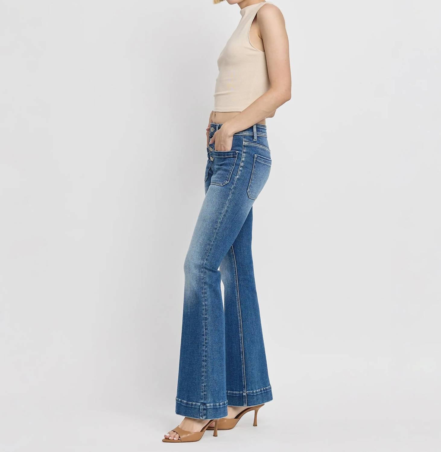 Vervet By Flying Monkey - Gleefully Mid Rise Trouser Hem Flare Jeans - Plus