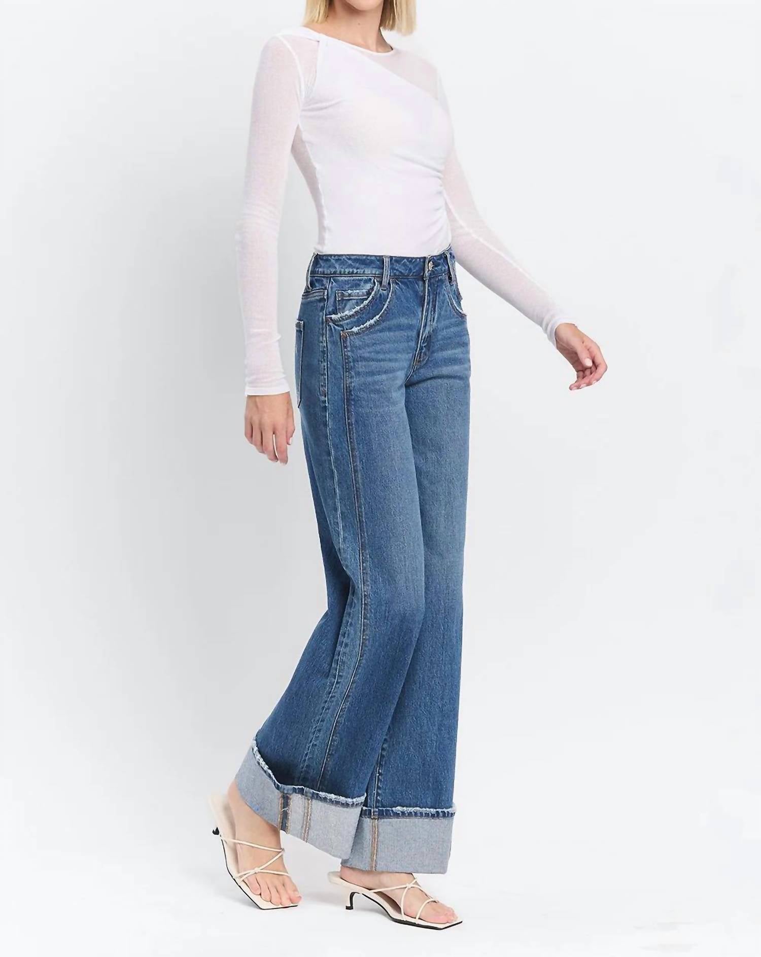 Vervet By Flying Monkey - High Rise Cuffed Panel Baggy Wide Jeans